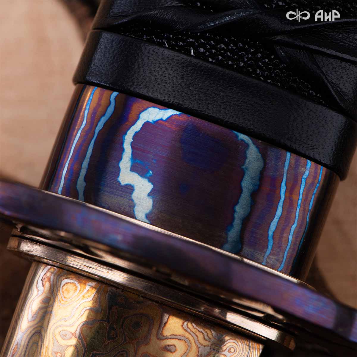 Компания «АиР» изготавливает катаны, имеющие конструктивное сходство с древним японским оружием. Клинок катаны выполняется из дамаска Zladinox (ручной ковки, с зонной закалкой), либо из нержавеющей стали 40Х10С2М.