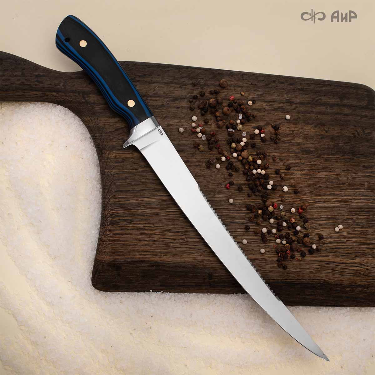 Нож "Мастер-Фиш" входит в набор «Таймень», который продается как в комплекте (Мастер-Фиш, Разделочный и Секач), так и по отдельности.