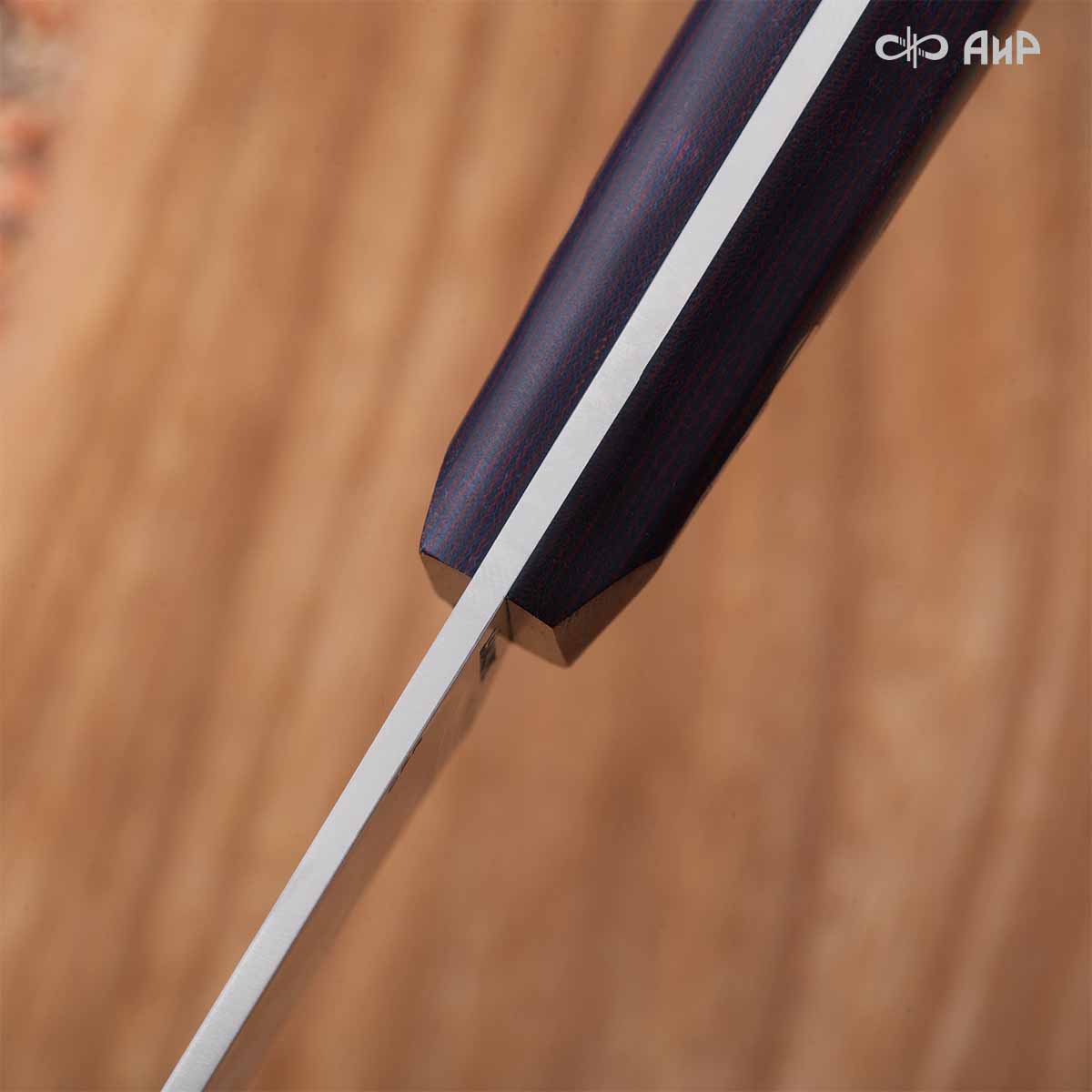 Нож «Шеф большой» – самый большой и массивный среди кухонных ножей. Он имеет широкое лезвие со слегка закругленной режущей кромкой. С его помощью чистят, режут, шинкуют и нарубают крупные овощи, например, капусту. Им же выполняют нарезку мяса, причем обухом можно отбивать мясо. Также его называют «Нож шеф-повара», «Шеф», «Нож повара» или «Французский нож», несмотря на то, что первоначальное его название – «Немецкий нож повара». Нож «Шеф большой» – это нож многоцелевого использования. Клинок имеет прямые спуски. Монтаж рукояти накладной.