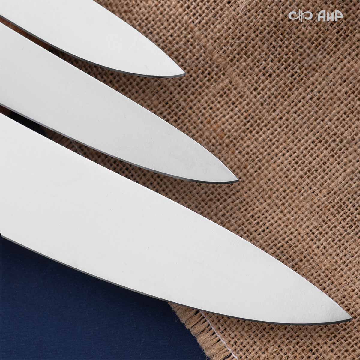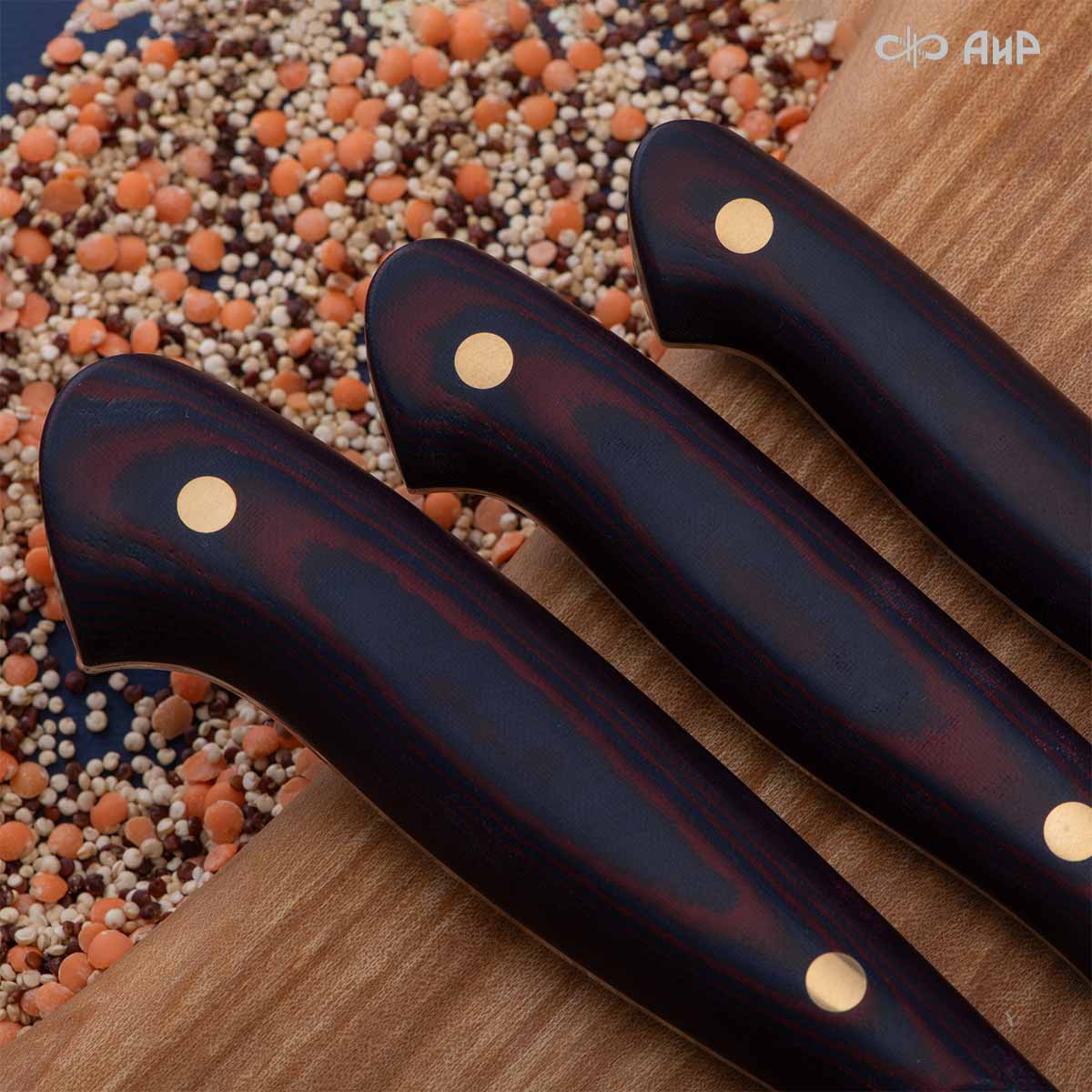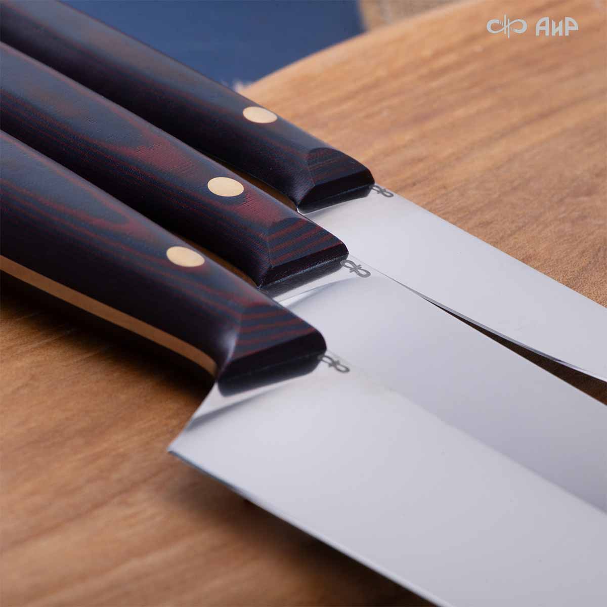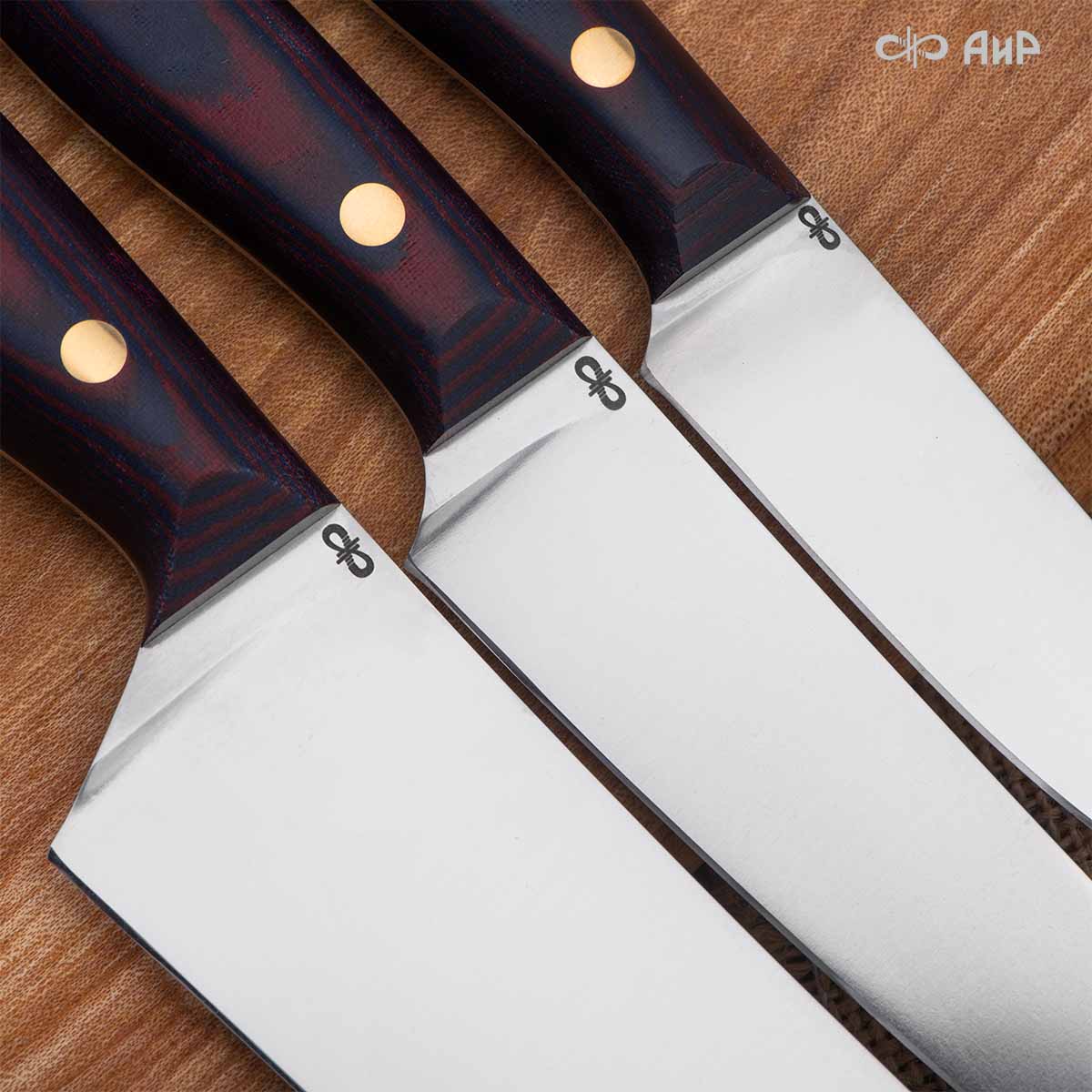 В набор входят следующие ножи: нож "Шеф большой", нож "Шеф средний" и нож "Шеф малый". Кастомная заточка