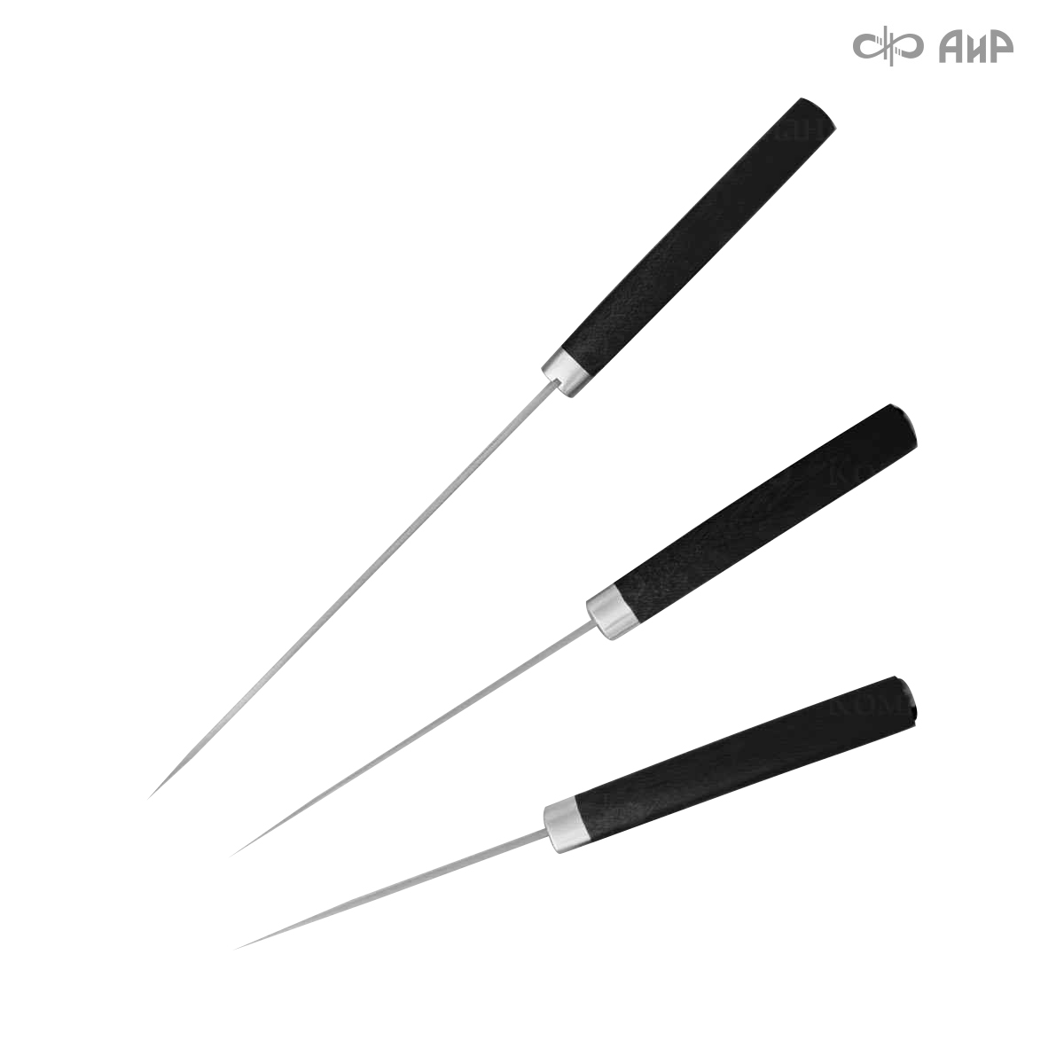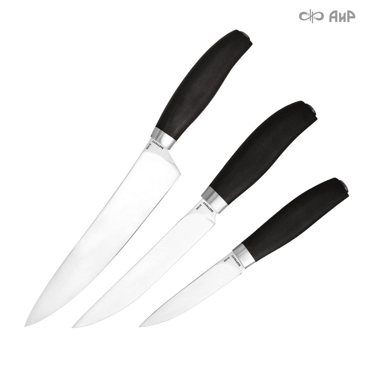 В набор входят следующие ножи: нож "Поварской", нож "Овощной" и нож "Овощной малый". Кастомная заточка