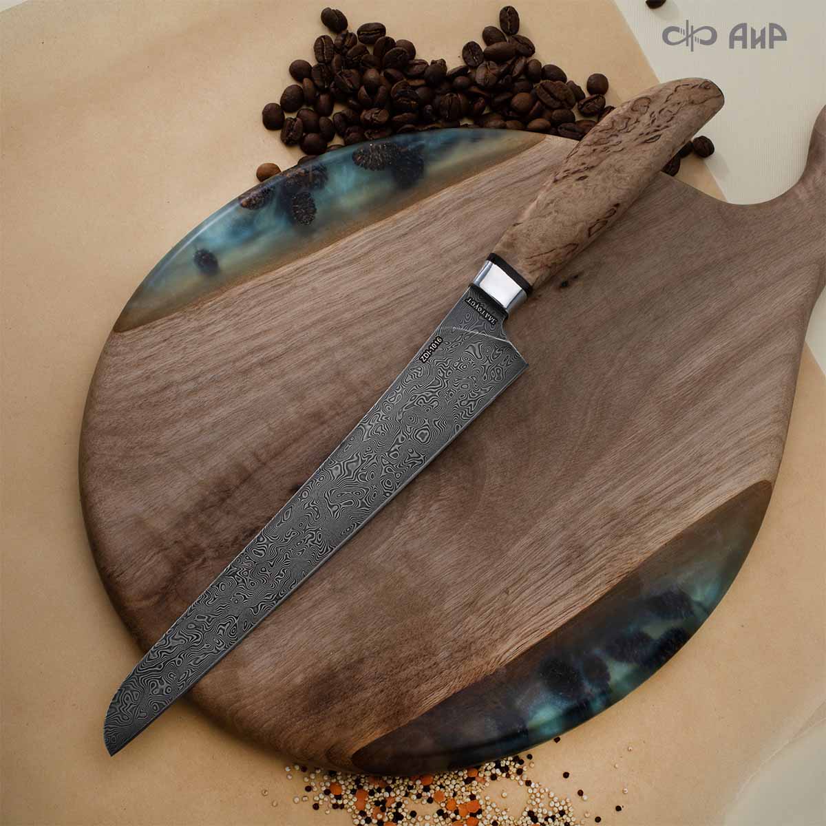 Для нарезки ветчины (карельская береза) дамасская сталь ZDI-1016