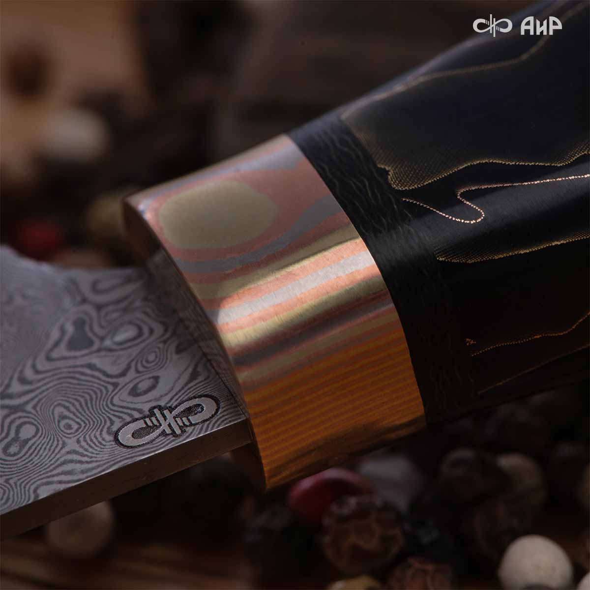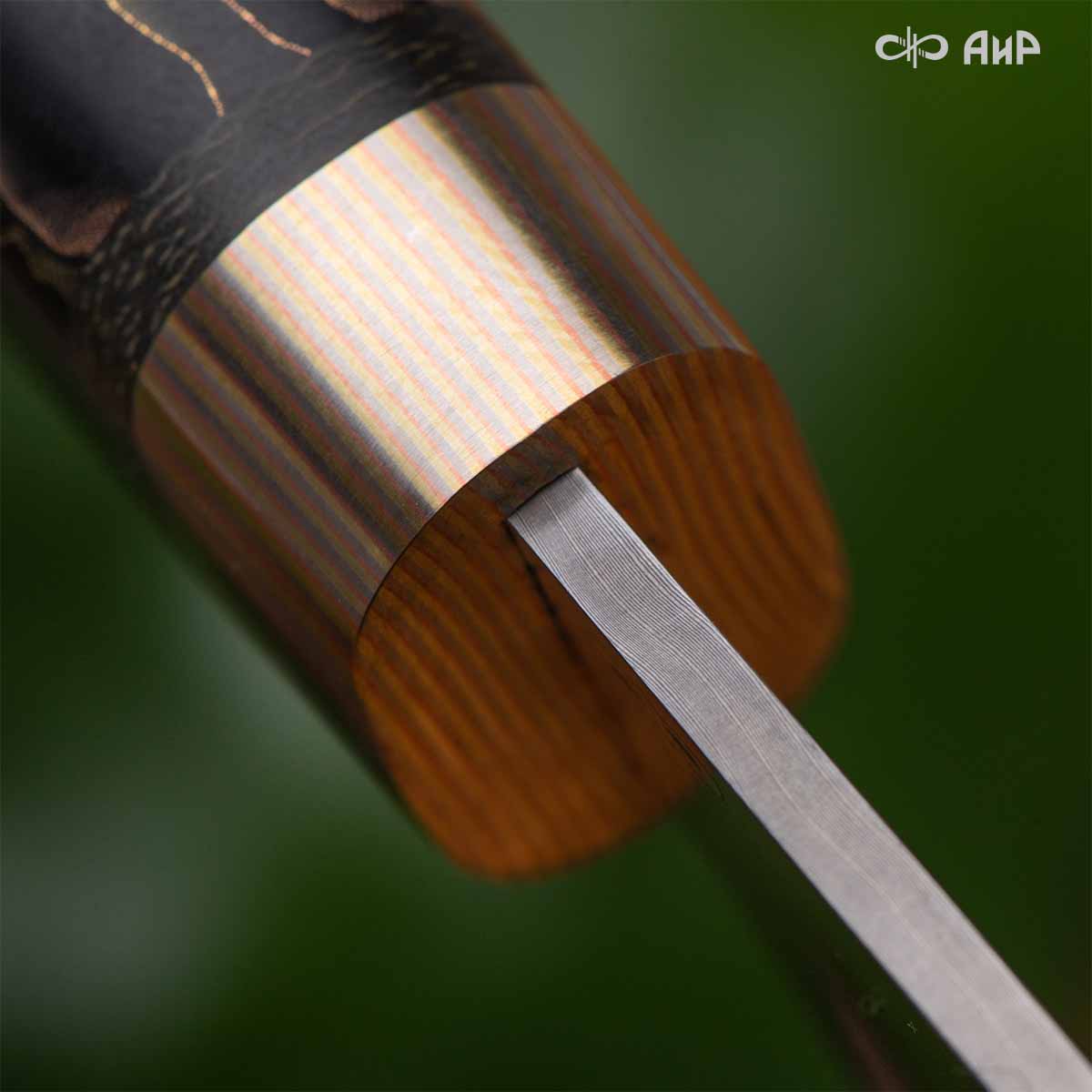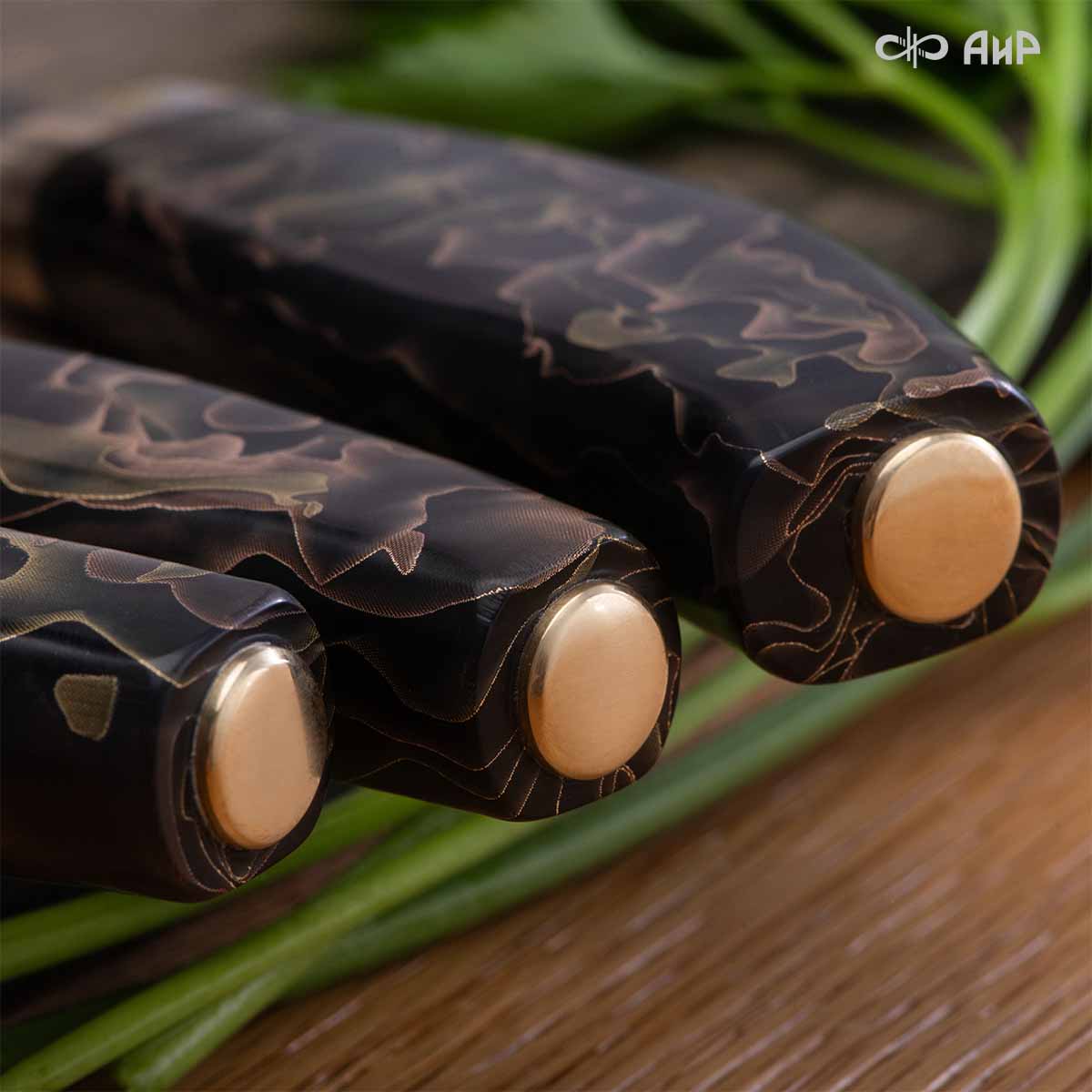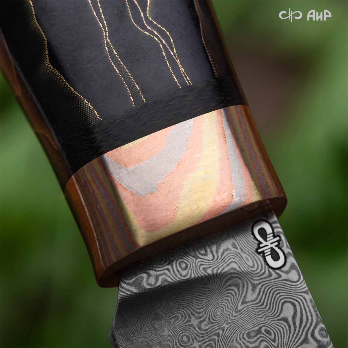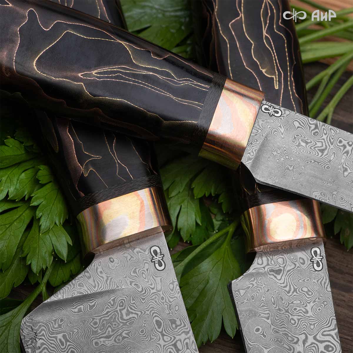 Набор Поварской-3 (композит с латунью и бронзой волны, мокуме гане, авторский кожаный кейс) дамасская сталь ZDI-1016