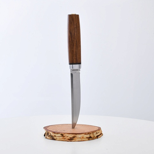 Нож «Финка Сканди» представляет собой современное воплощение традиционной для скандинавских народов формы финского ножа, который будет верным помощником человеку в любых его начинаниях. Высокие спуски клинка придают ему отличные режущие характеристики, при этом проникающие свойства остаются на высоте из-за прекрасной геометрии клинка. Удобная рукоять, имеющая многовековой опыт использования ее народами Севера, прекрасно подходит под любую руку. При этом используется очень надежный сквозной монтаж рукояти.