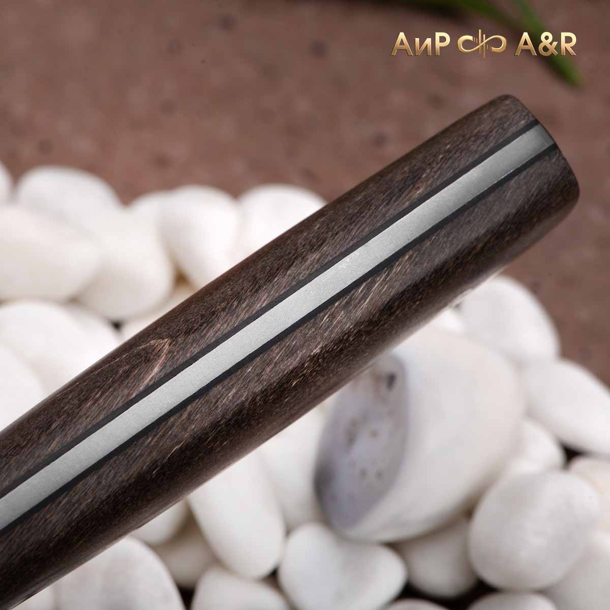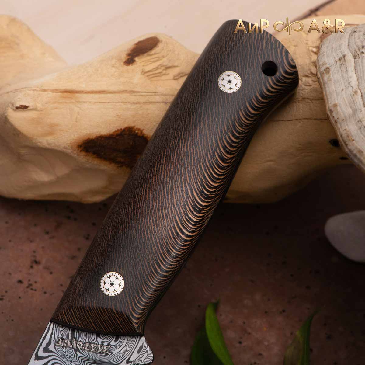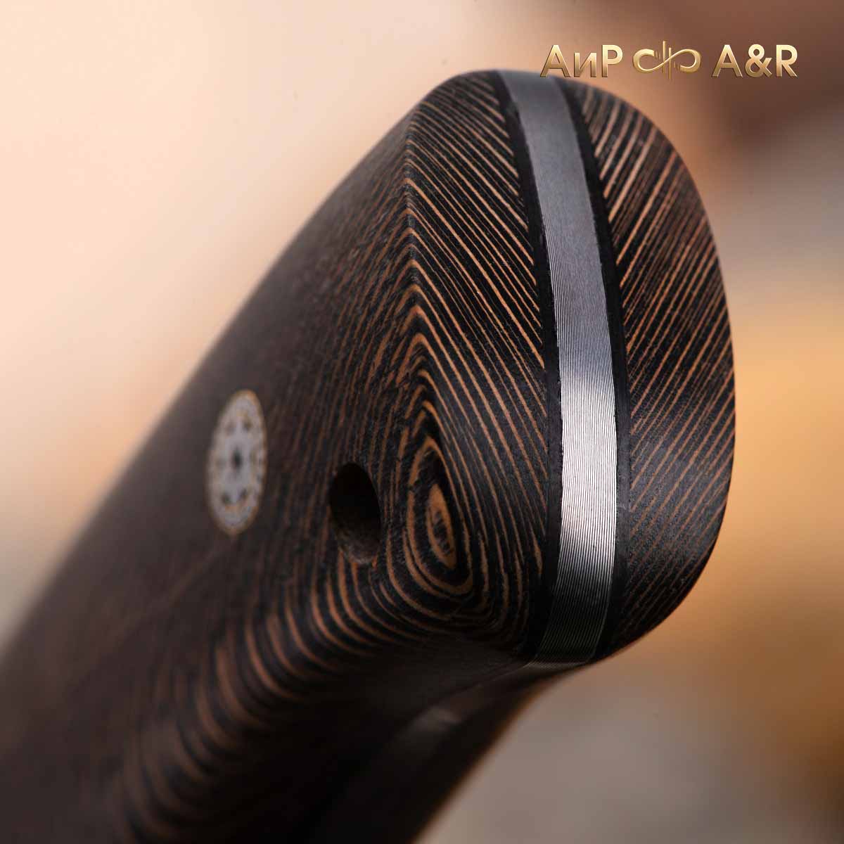 Стриж (стабилизированный платан черный, мозаичные пины, фибра), дамасская сталь ZD-0803, узор большая роза