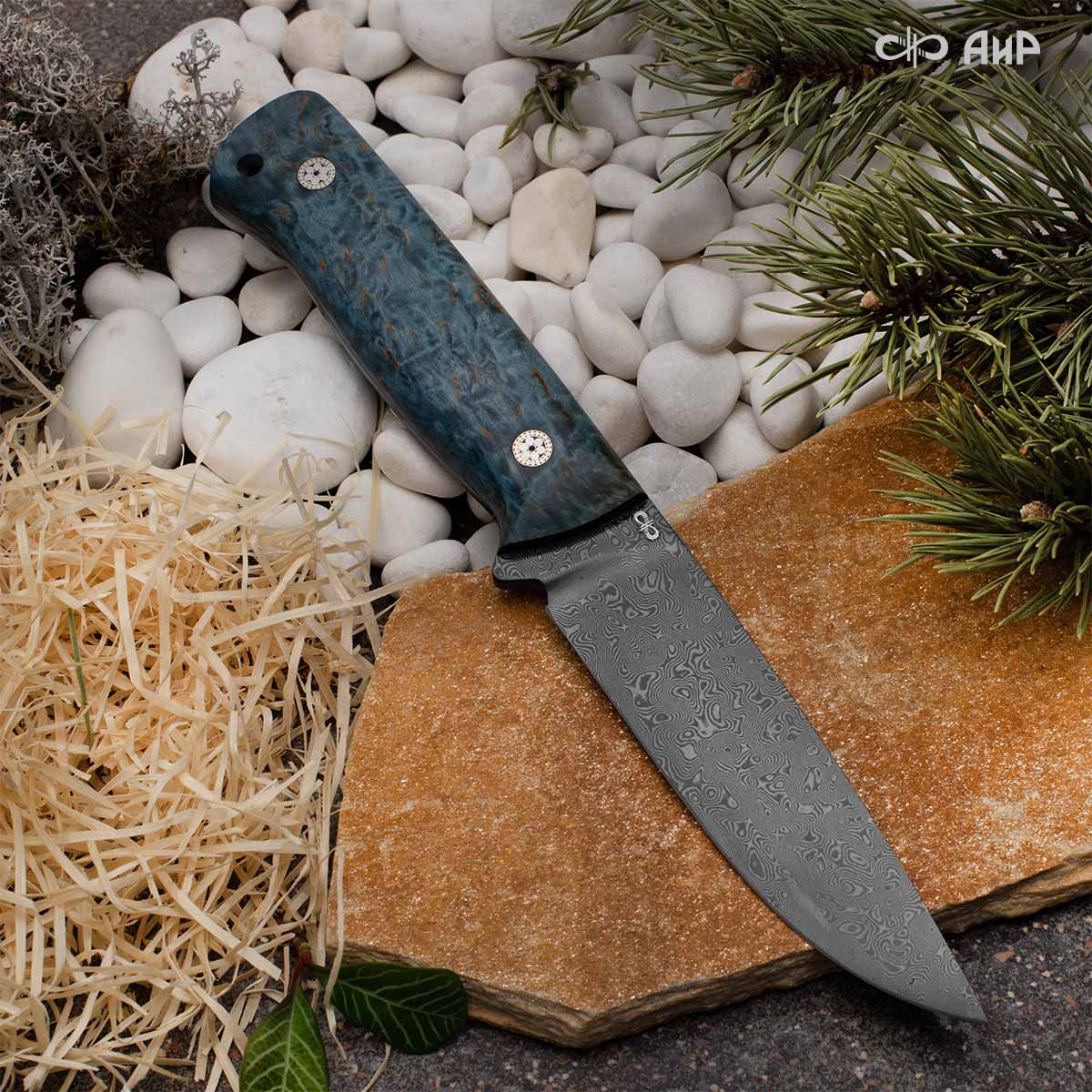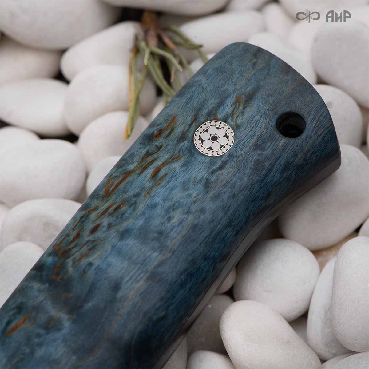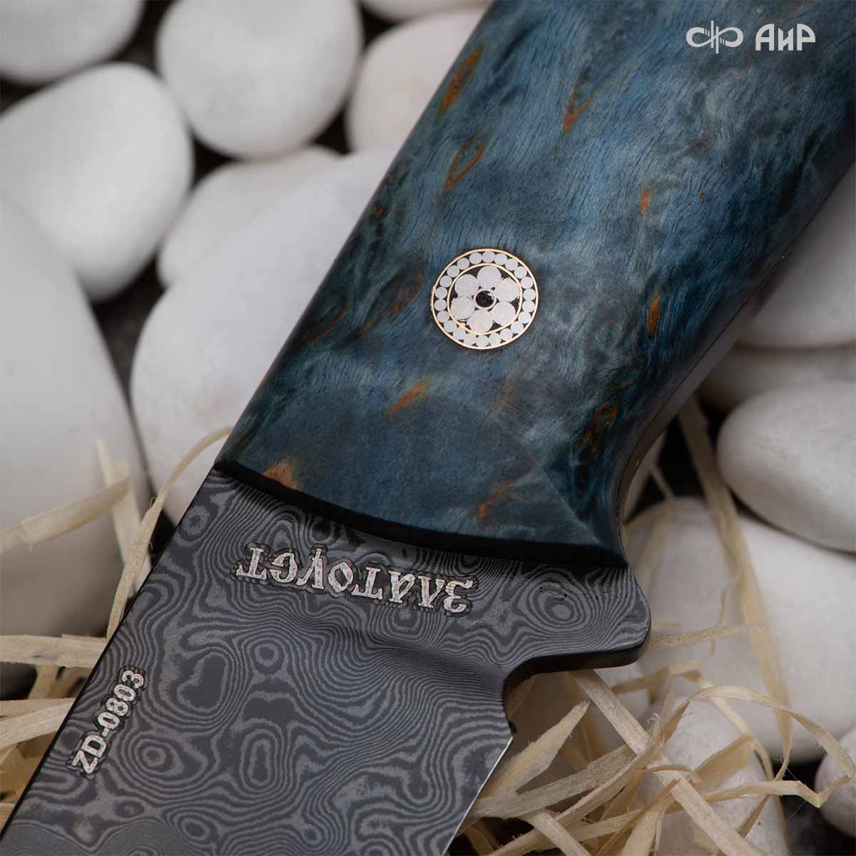 Стриж (стабилизированная карельская береза лазурная) дамасская сталь ZD-0803