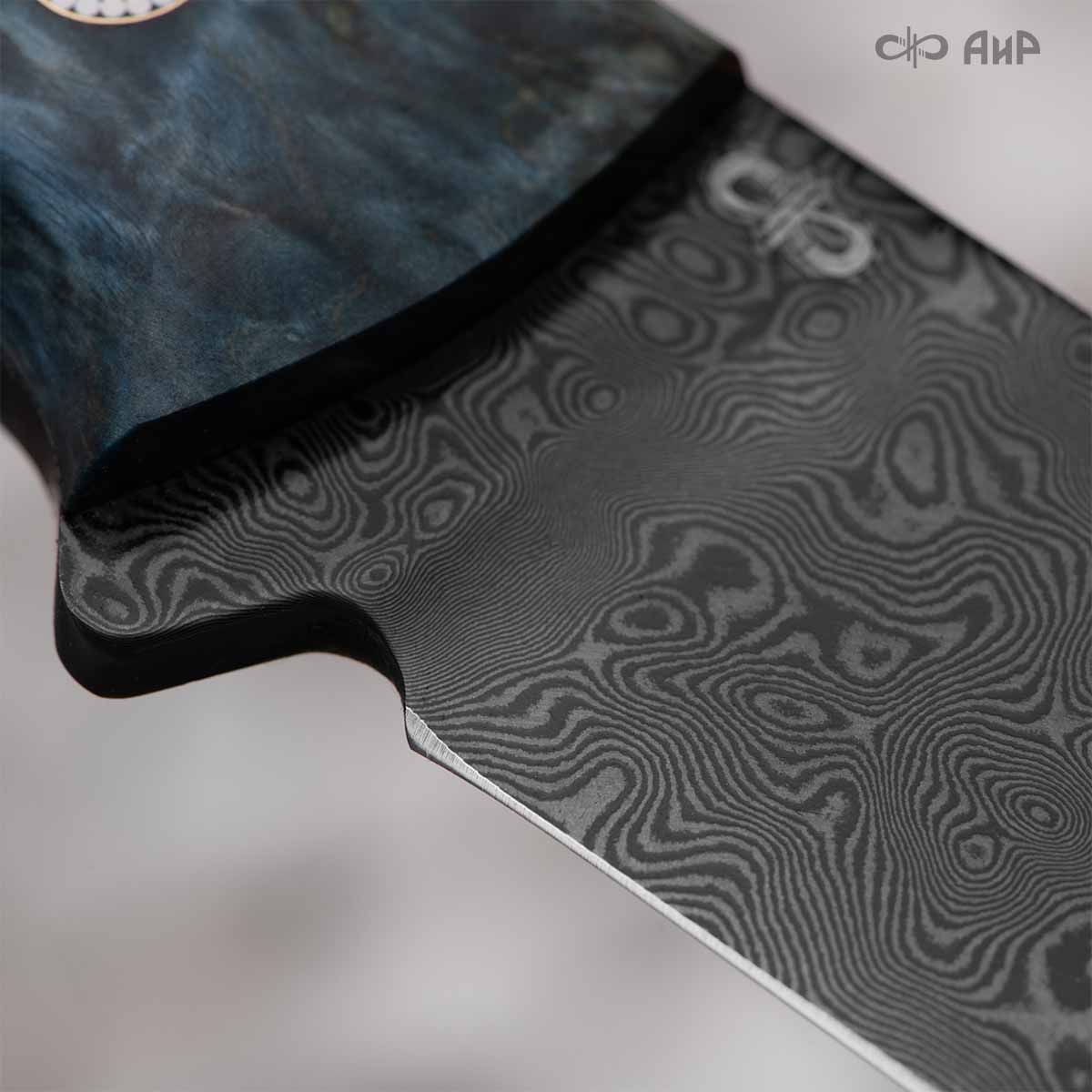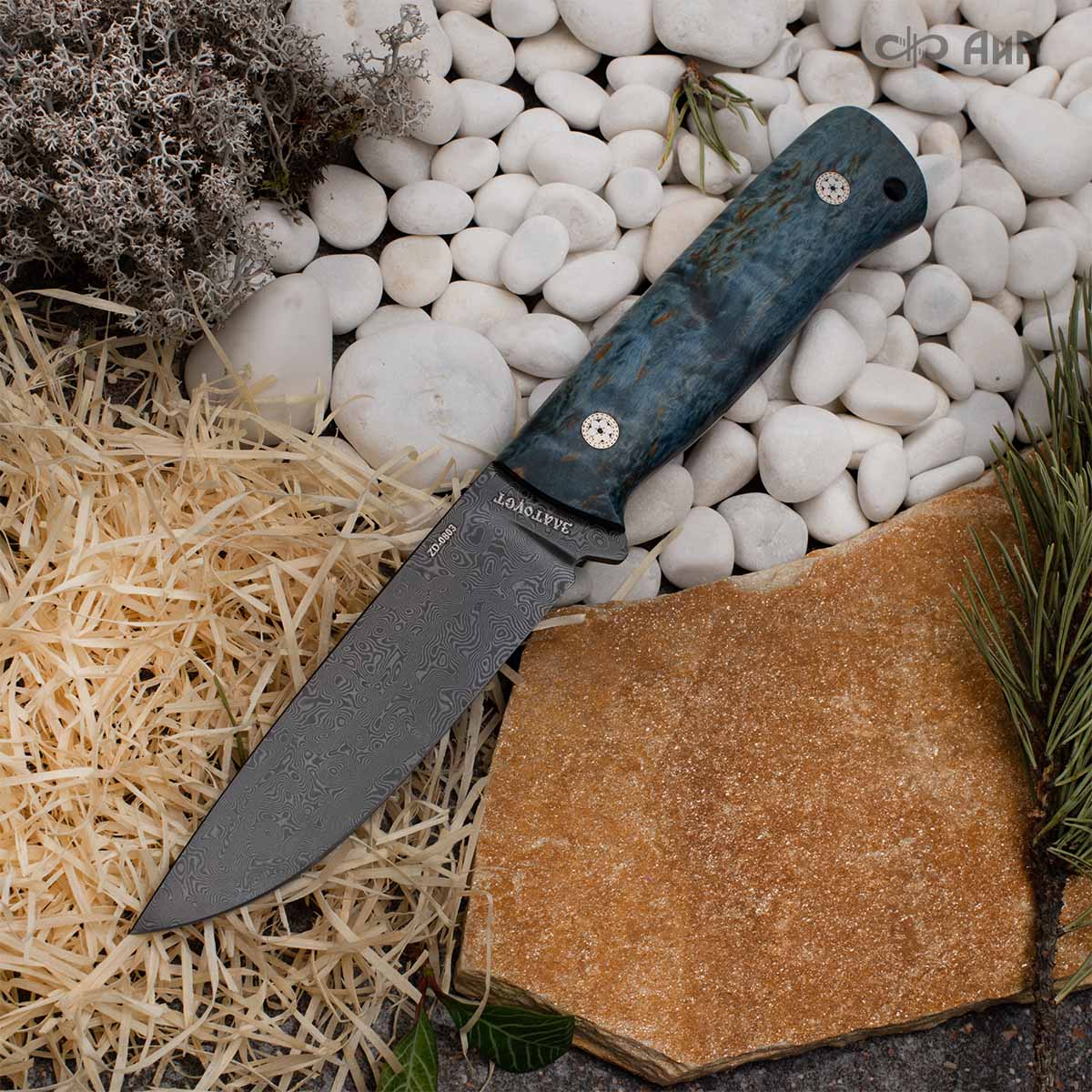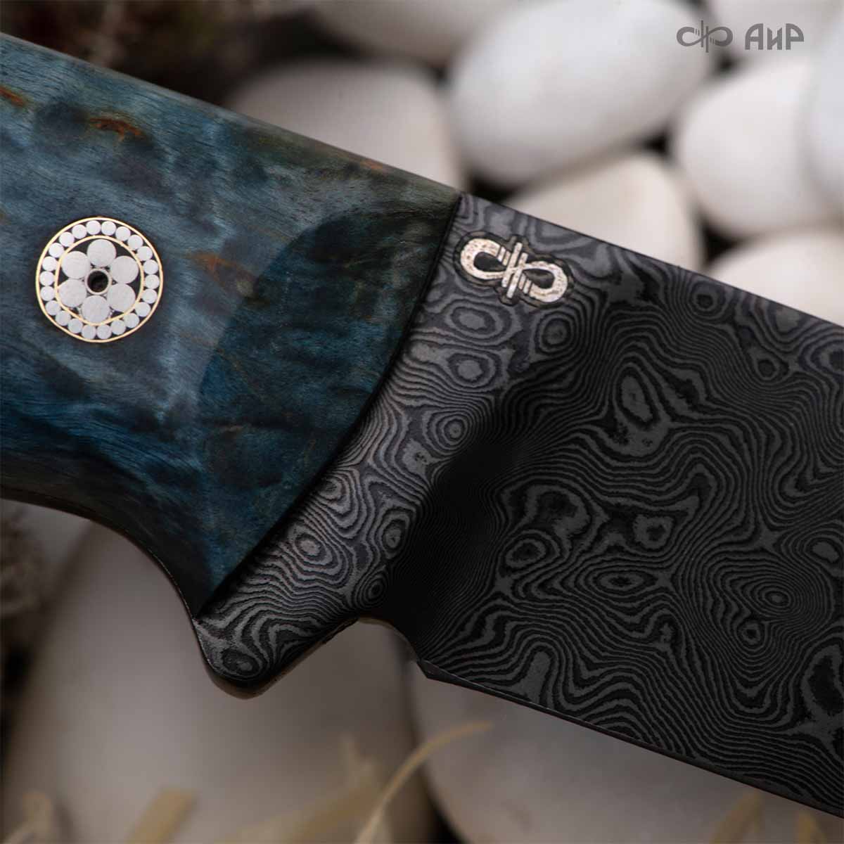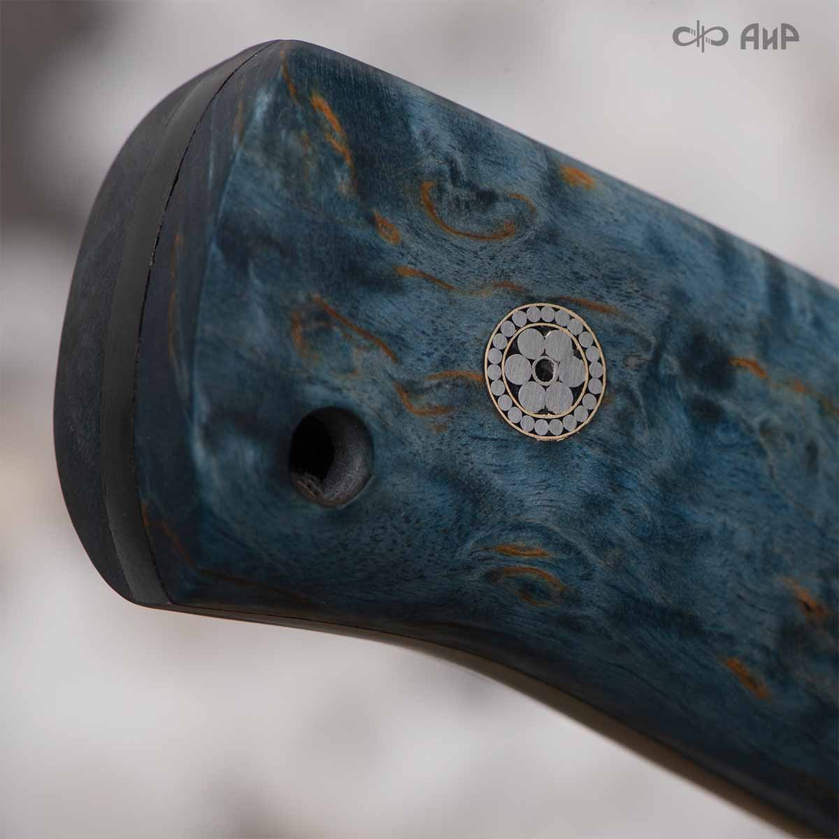 Стриж (стабилизированная карельская береза лазурная) дамасская сталь ZD-0803