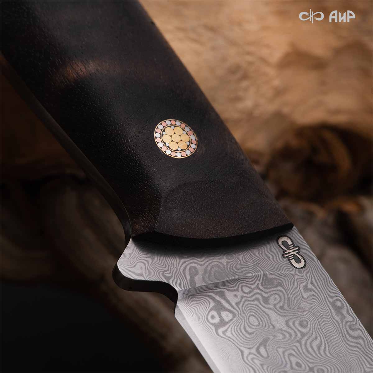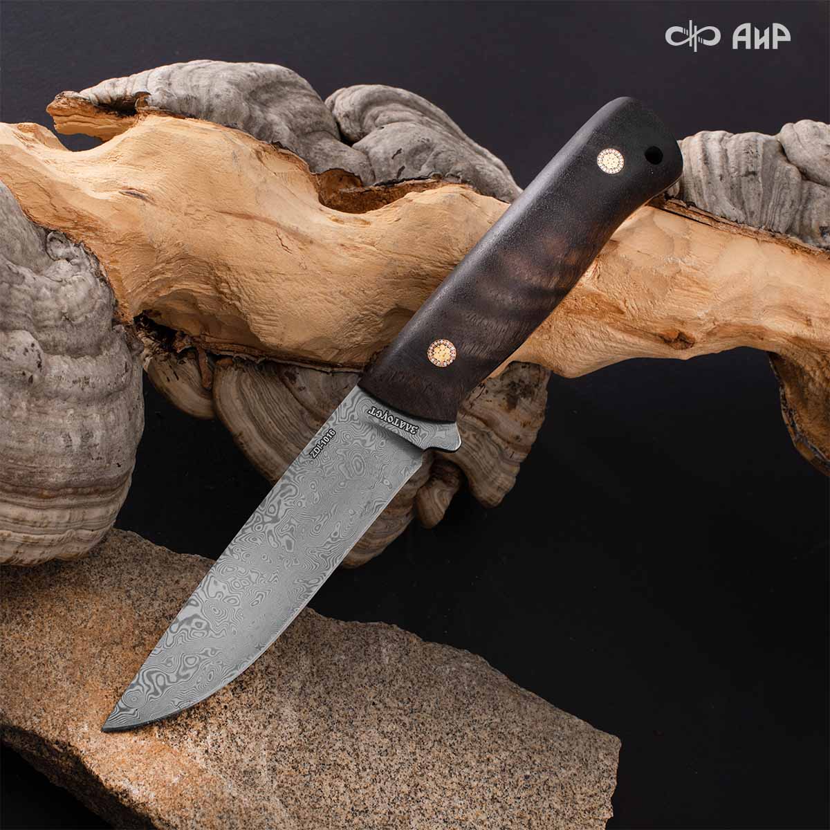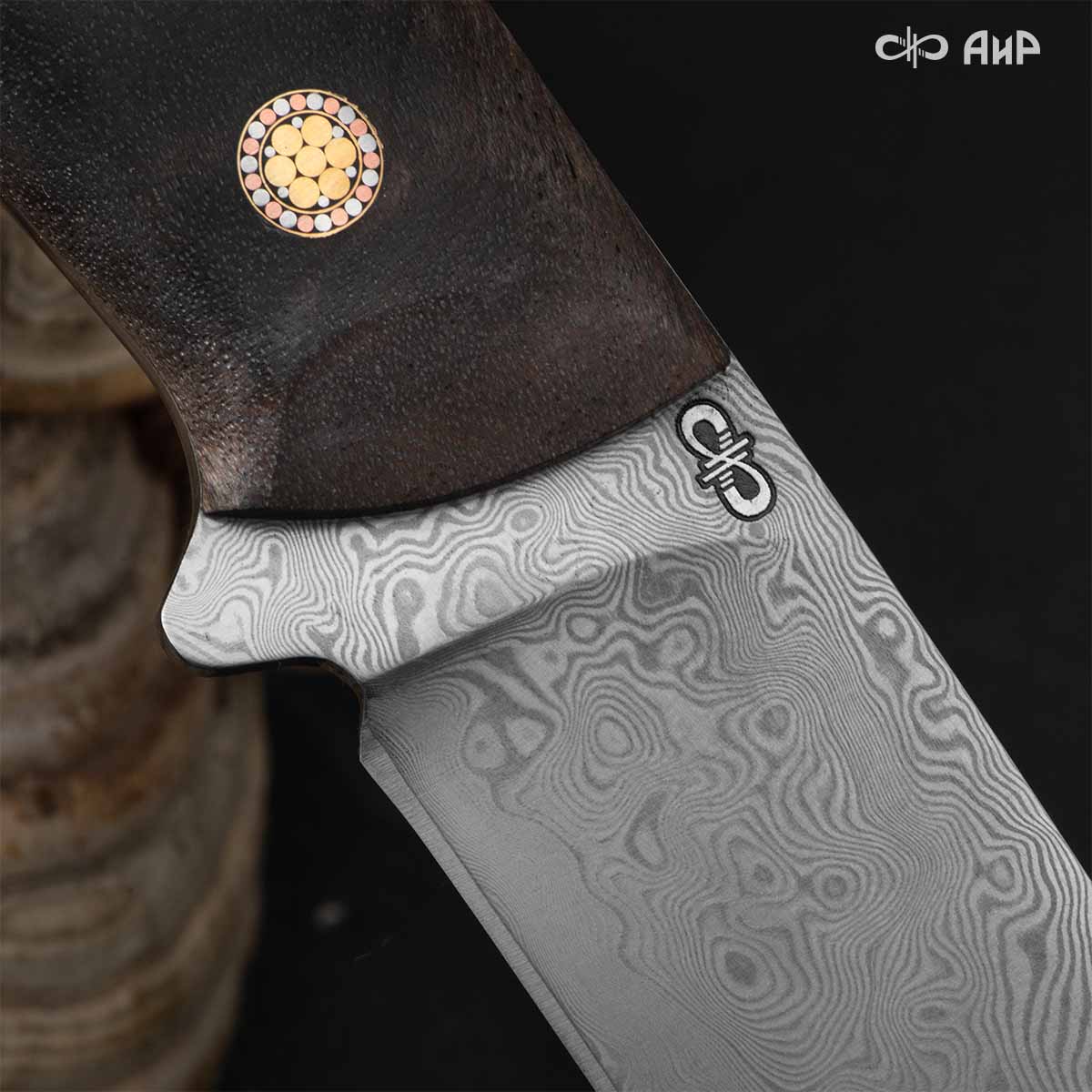 Стриж (стабилизированный березовый кап коричневый, мозаичные пины) дамасская сталь ZDI-1016