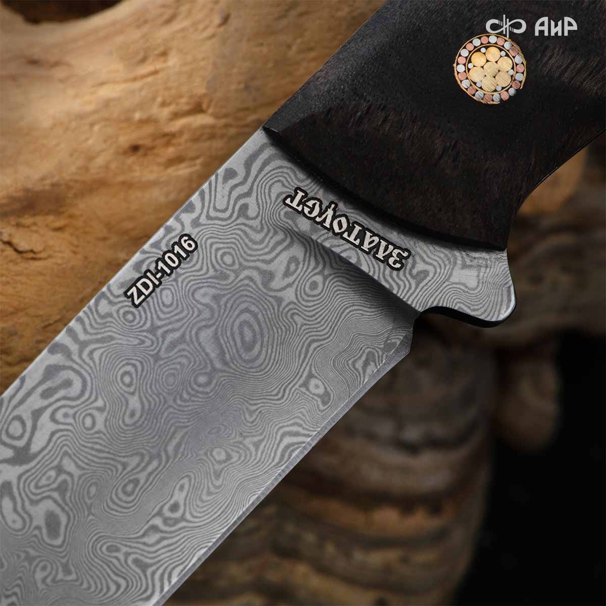 Первые буквы названия ZDI-1016 Компания использует в обозначении своих композиций: ZDI – высокоуглеродистые высоколегированные (атмосферостойкие) композиции. Первые две цифры в обозначении соответствуют среднему содержанию углерода, вторые две цифры – среднему содержанию легирующих элементов. Высокое содержание углерода и наличие специальных карбидов (хрома, молибдена, ванадия и т.д.) обеспечивают клинку высокие эксплуатационные (режущие свойства, прочность и т.д.) и декоративные свойства.
