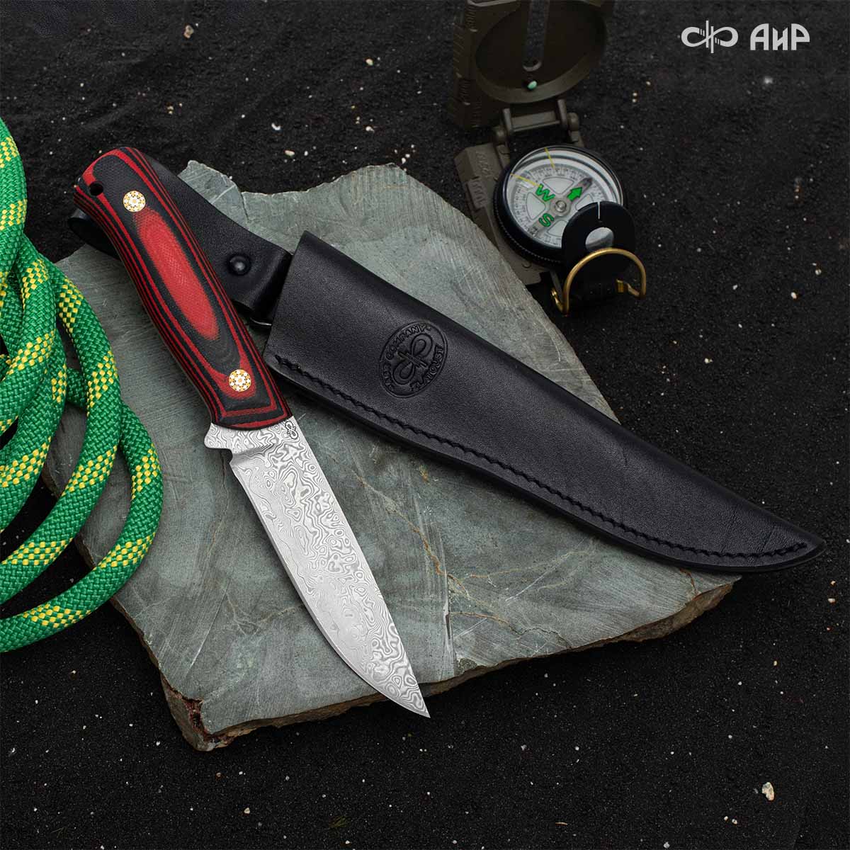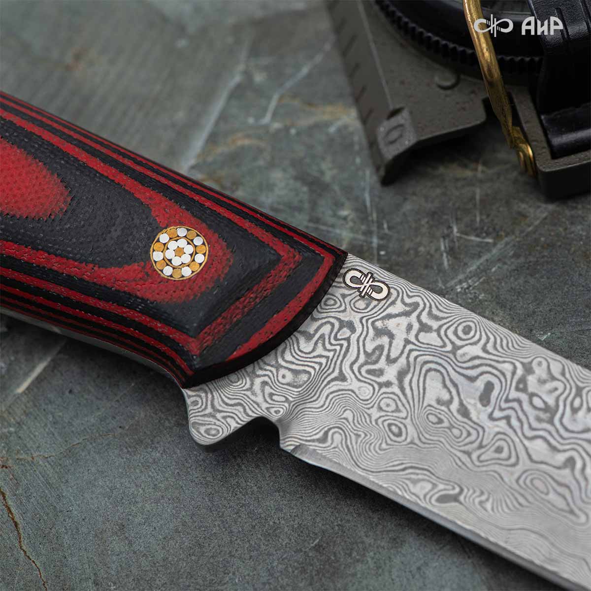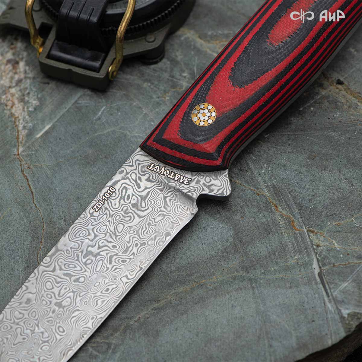 Стриж (G10 красно-черный, мозаичные пины) дамасская сталь ZDI-1016