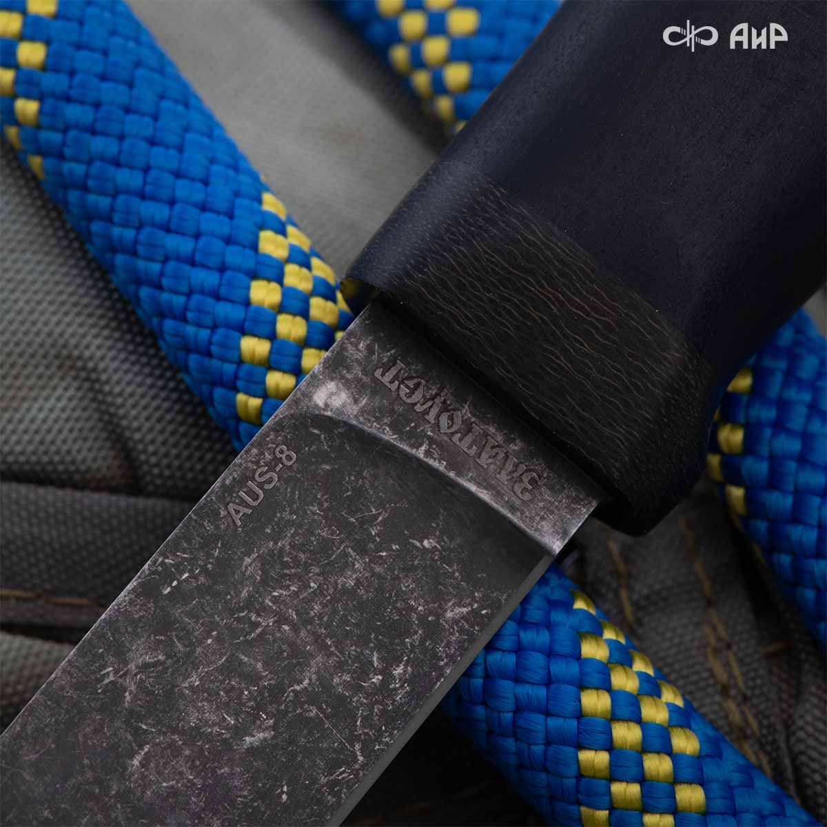 - клинок ‒ сталь AUS-8, клиновая срезка, без дола, обработка клинка ‒ stonewash