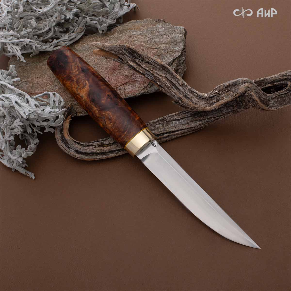 Финка Сканди Мини (стабилизированный кап тополя оранжевый, латунь)