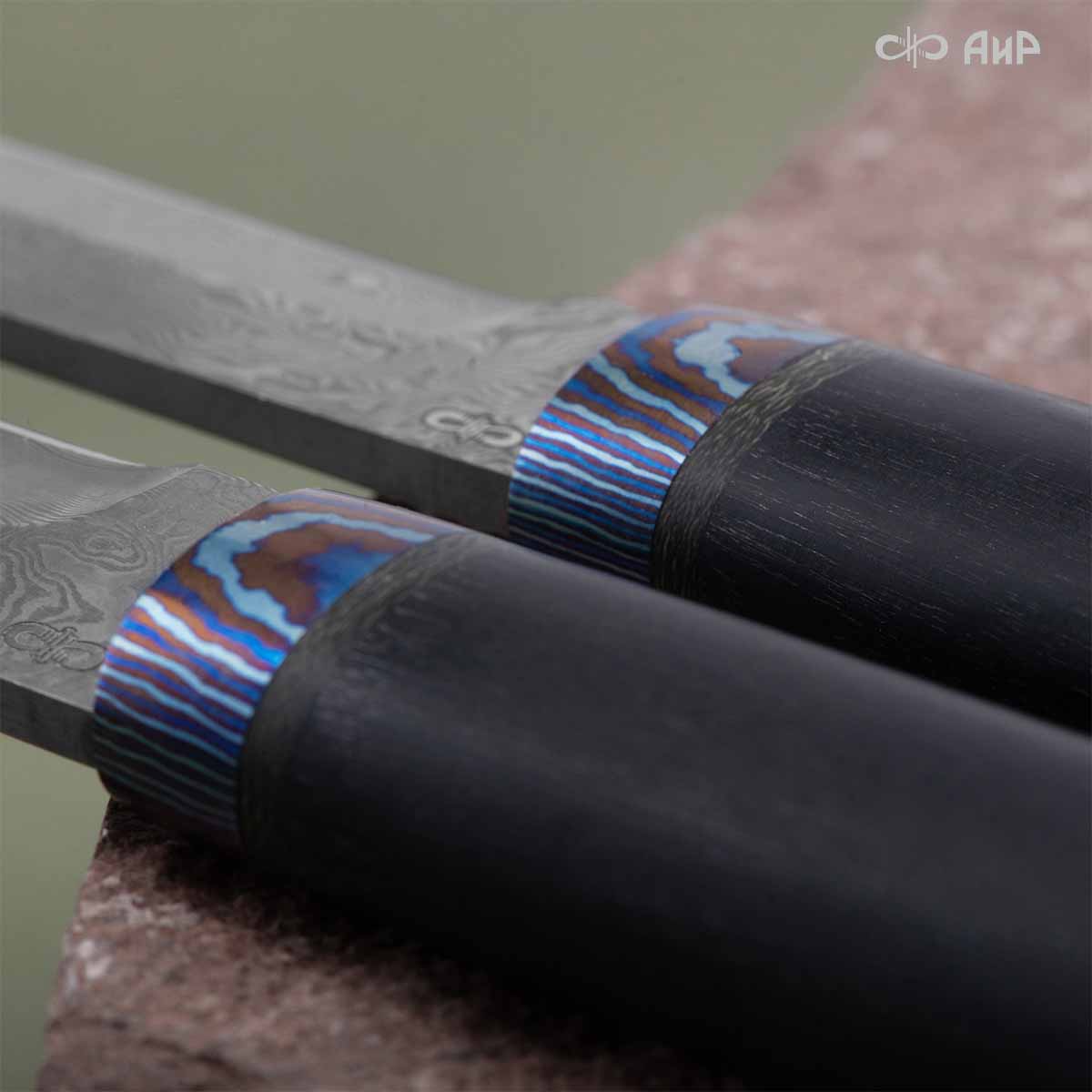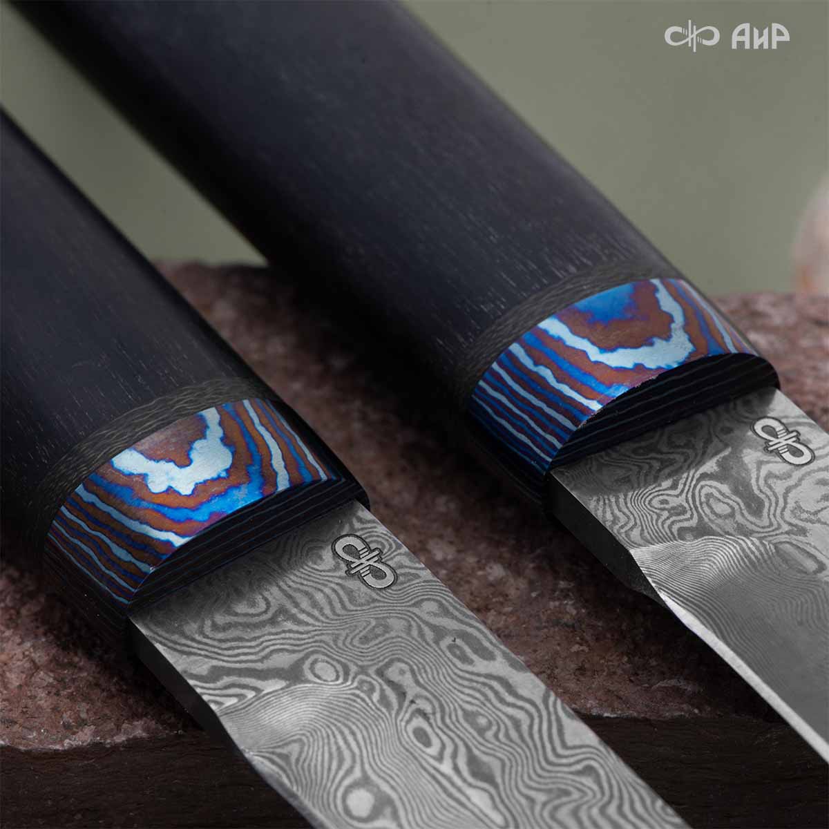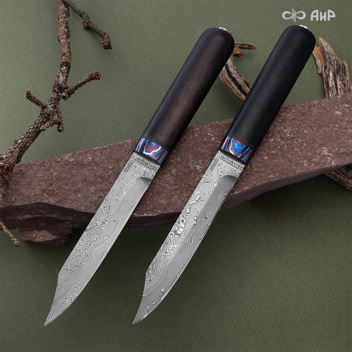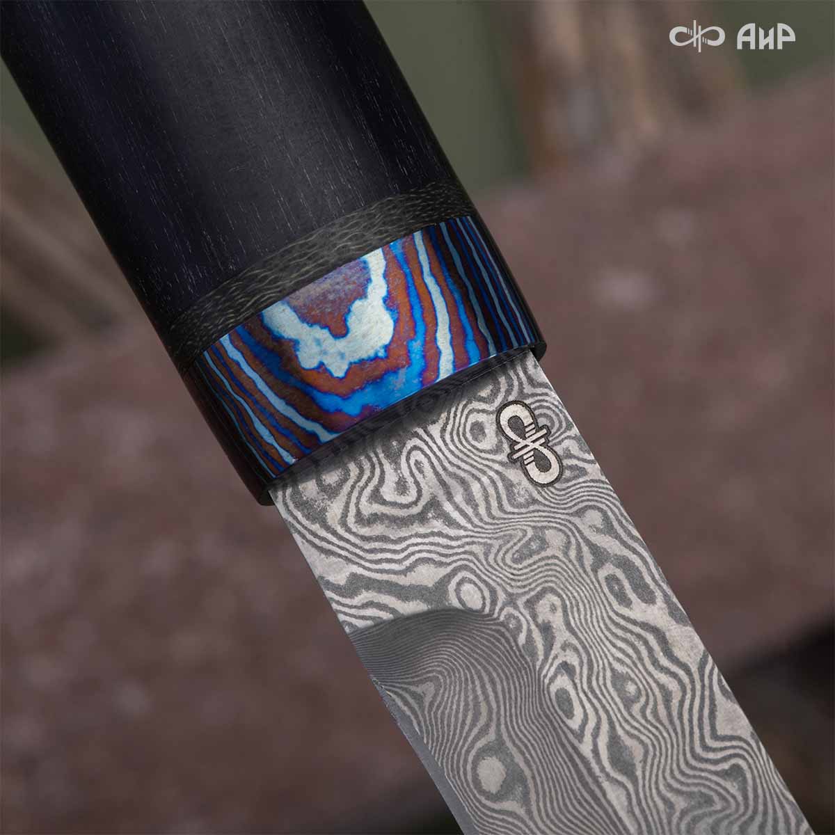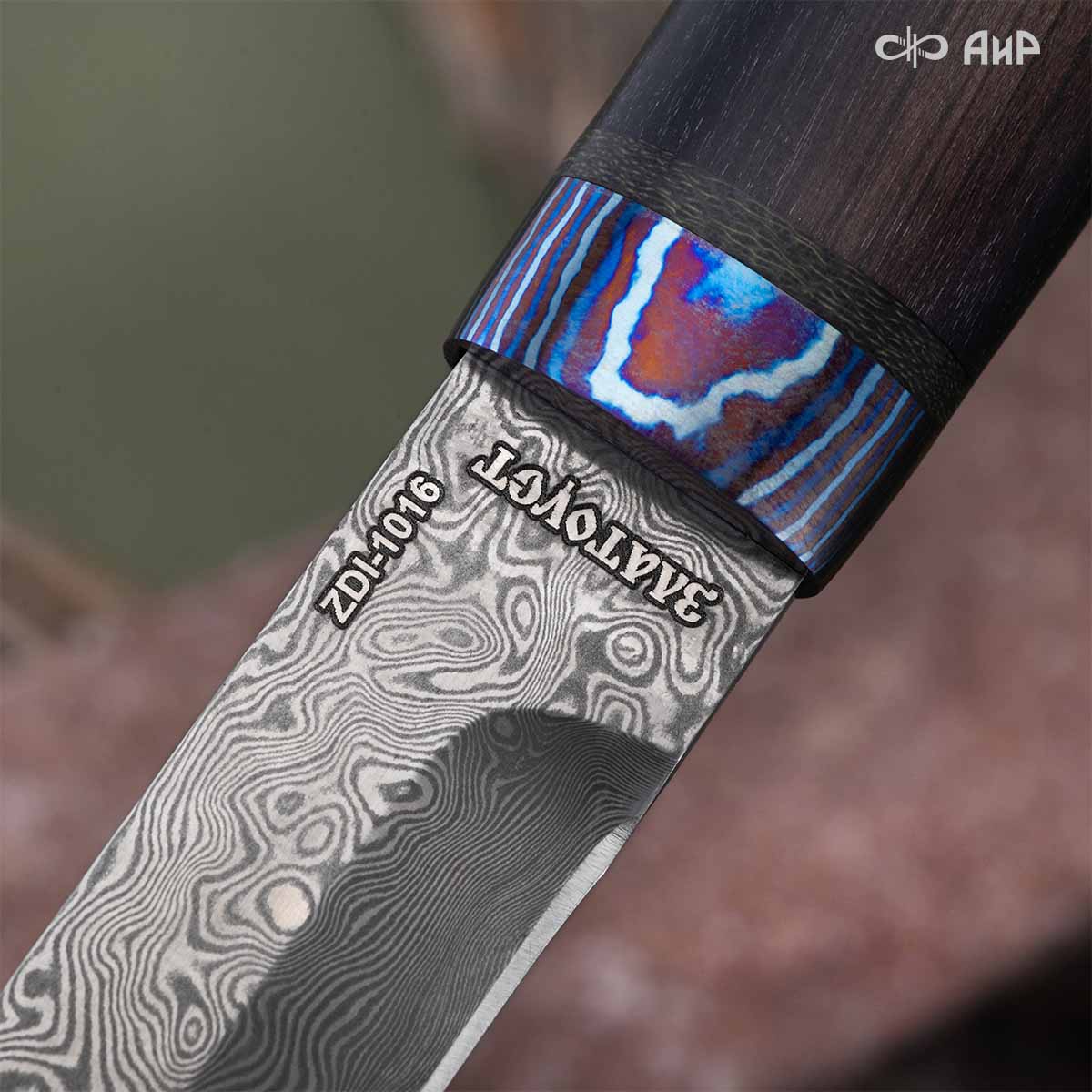 Засапожный-1 (стабилизированный граб, ЗлаТи (ZlaTi), кастомная заточка) дамасская сталь ZDI-1016