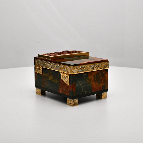 Шкатулка, изготовленная из красивейшей яшмы и янтаря, декорированная в стиле златоустовской гравюры, послужит прекрасным предметом для хранения женских украшений. Срок изготовления 25-40 рабочих дней, 100% предоплата.