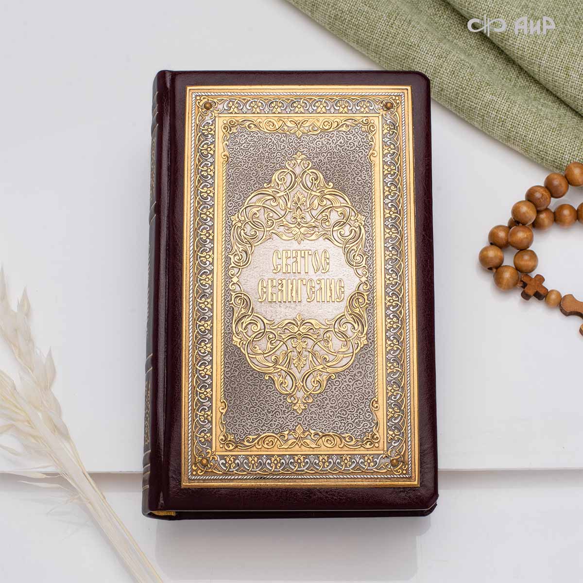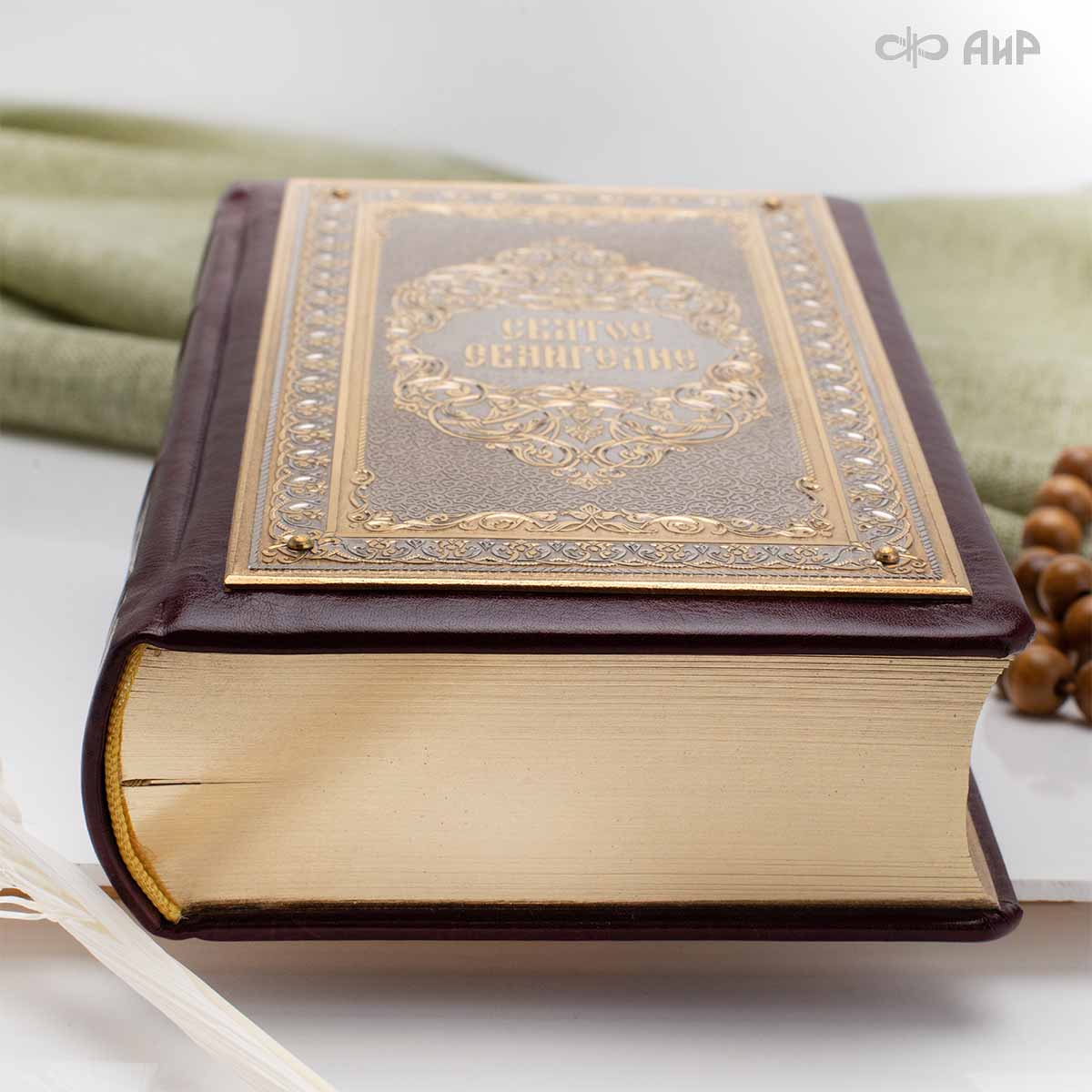 Святое Евангелие в кожаном окладе с декоративной накладкой, Артикул: 39136 *