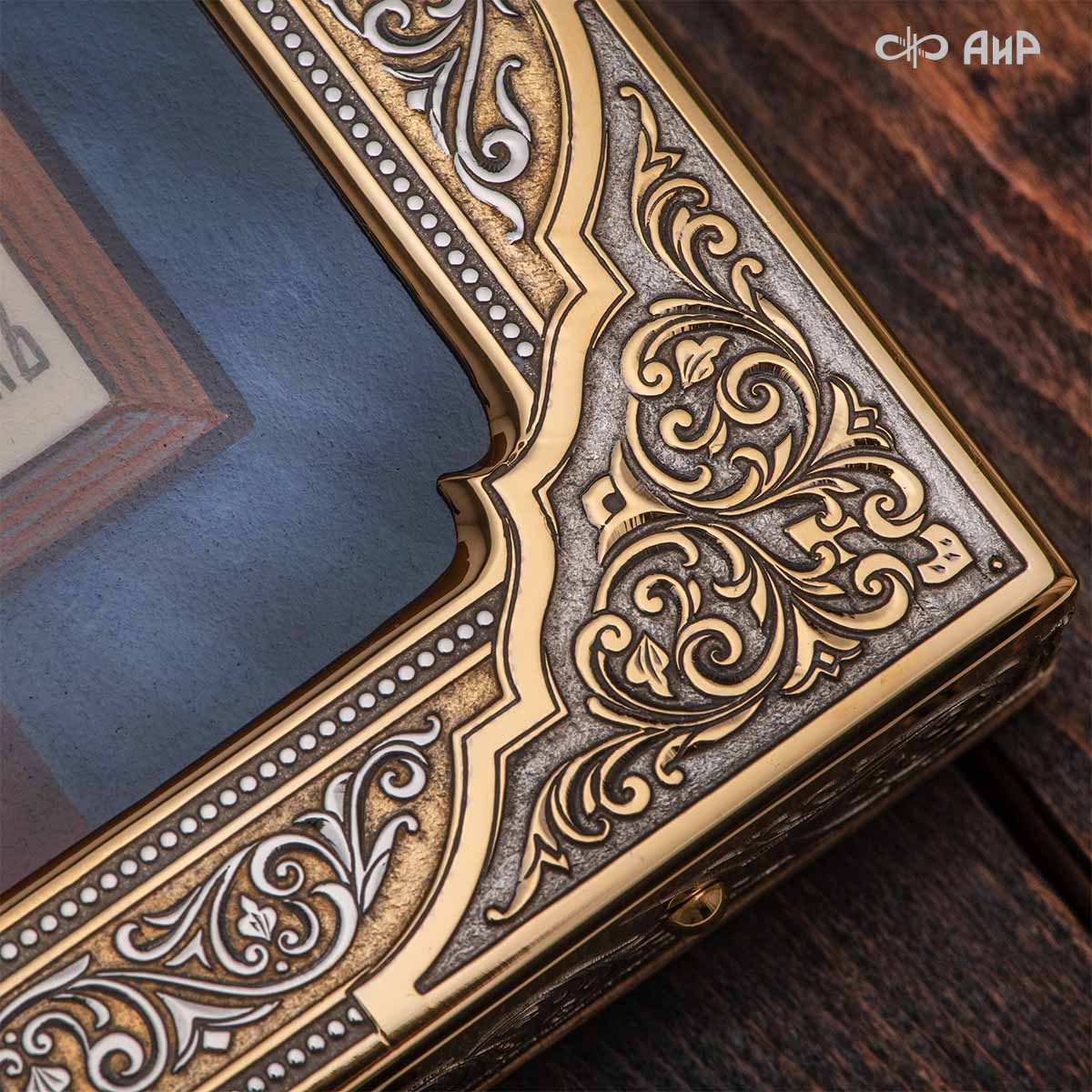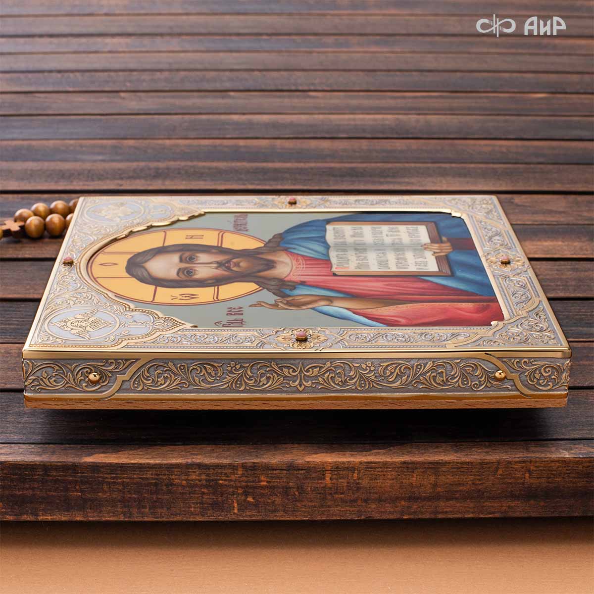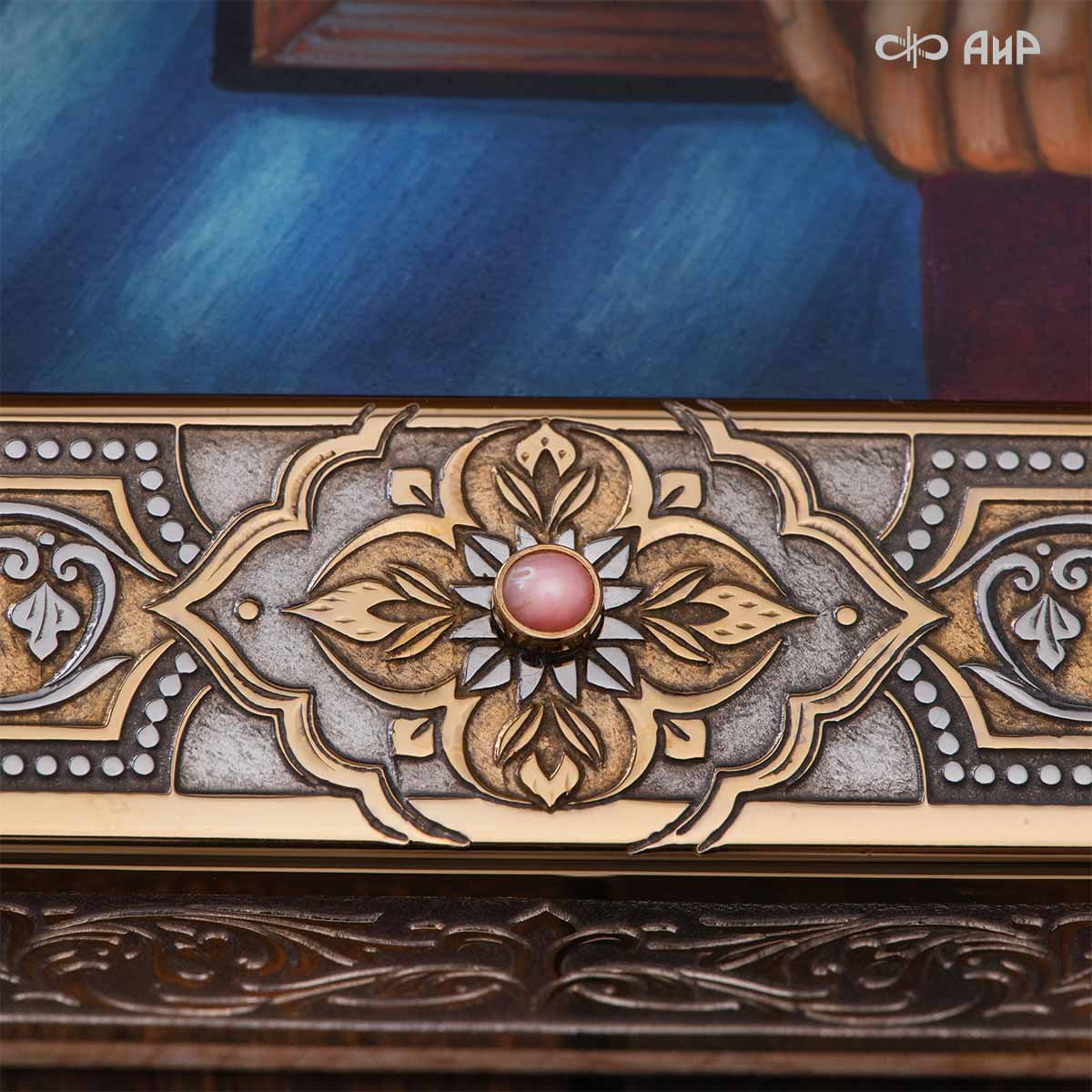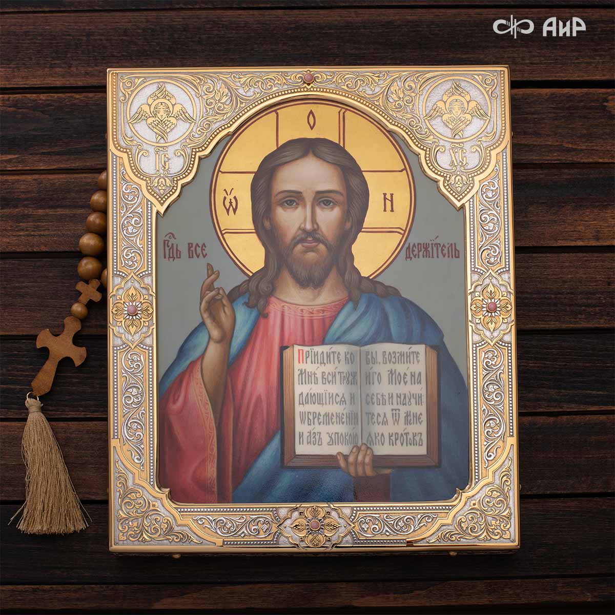 Икона в окладе “Господь Вседержитель” – это уникальное произведение искусства. Оклад иконы, созданный мастерами компании “АиР” в городе Златоуст, покрыт золотом высшей пробы (999,9°) толщиной в 1 микрон, что придает ей особую ценность и благородство. Каждый элемент оклада тщательно проработан, что делает икону настоящим шедевром художественного мастерства и символом духовной силы.