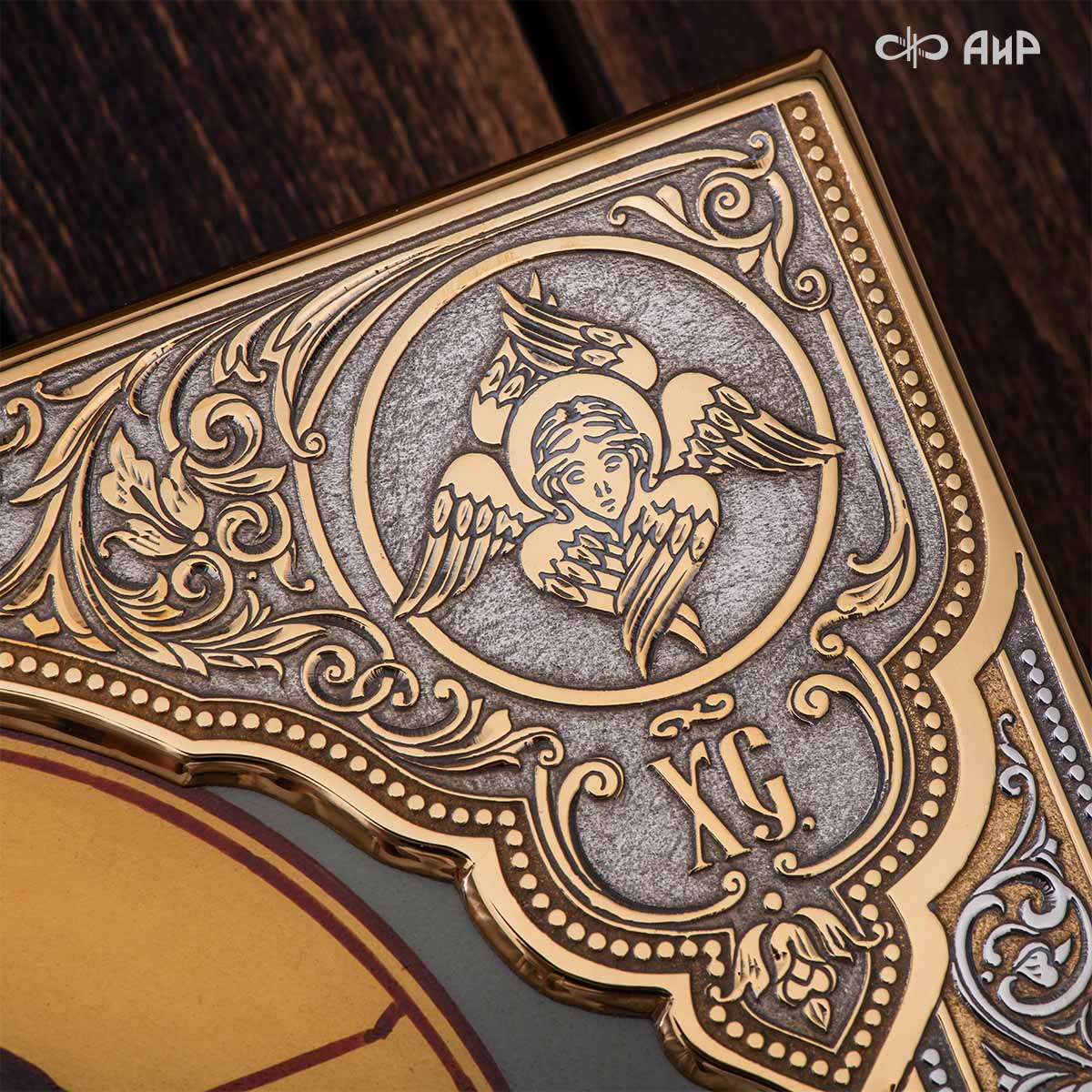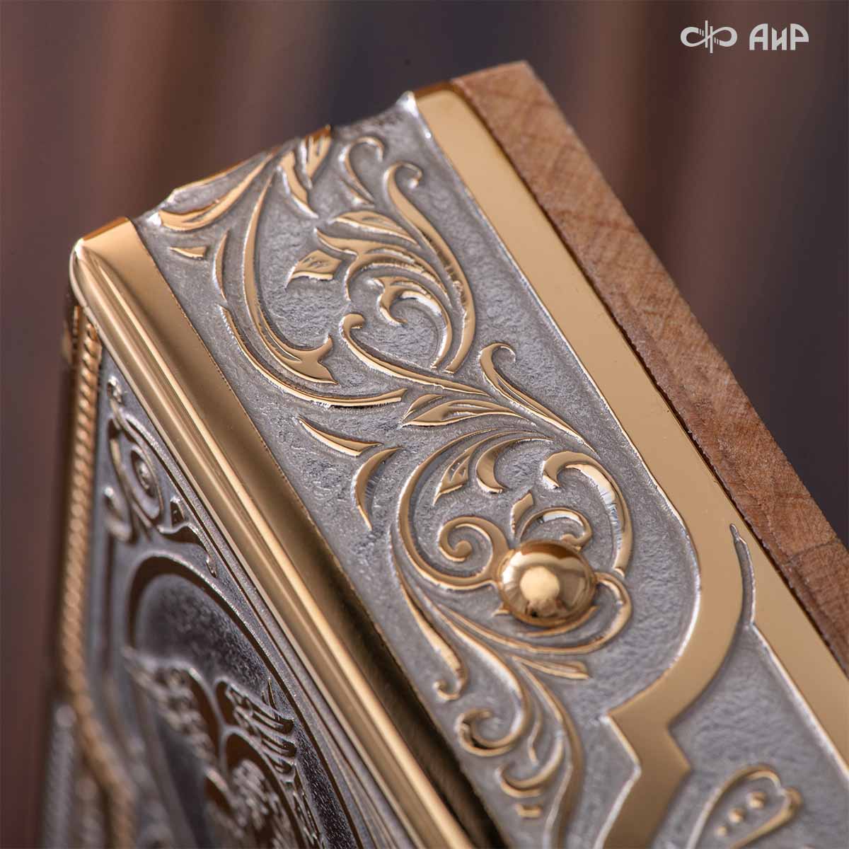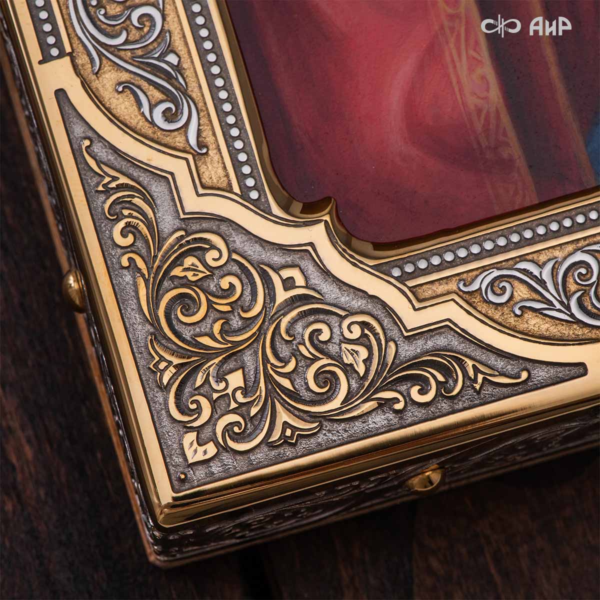 Икона в окладе “Господь Вседержитель” – это уникальное произведение искусства. Оклад иконы, созданный мастерами компании “АиР” в городе Златоуст, покрыт золотом высшей пробы (999,9°) толщиной в 1 микрон, что придает ей особую ценность и благородство. Каждый элемент оклада тщательно проработан, что делает икону настоящим шедевром художественного мастерства и символом духовной силы.