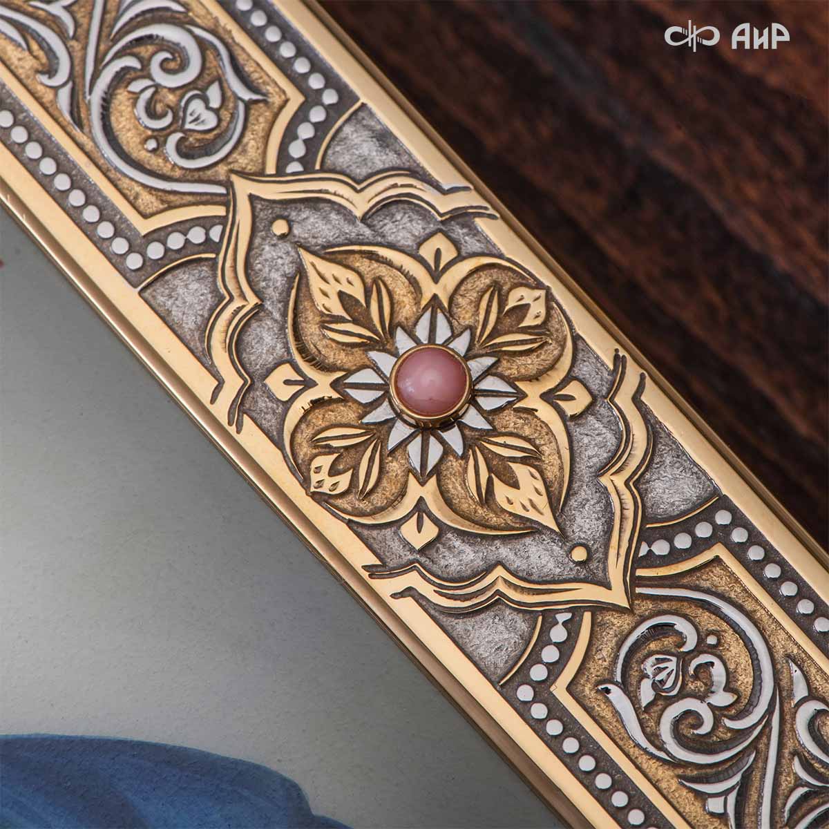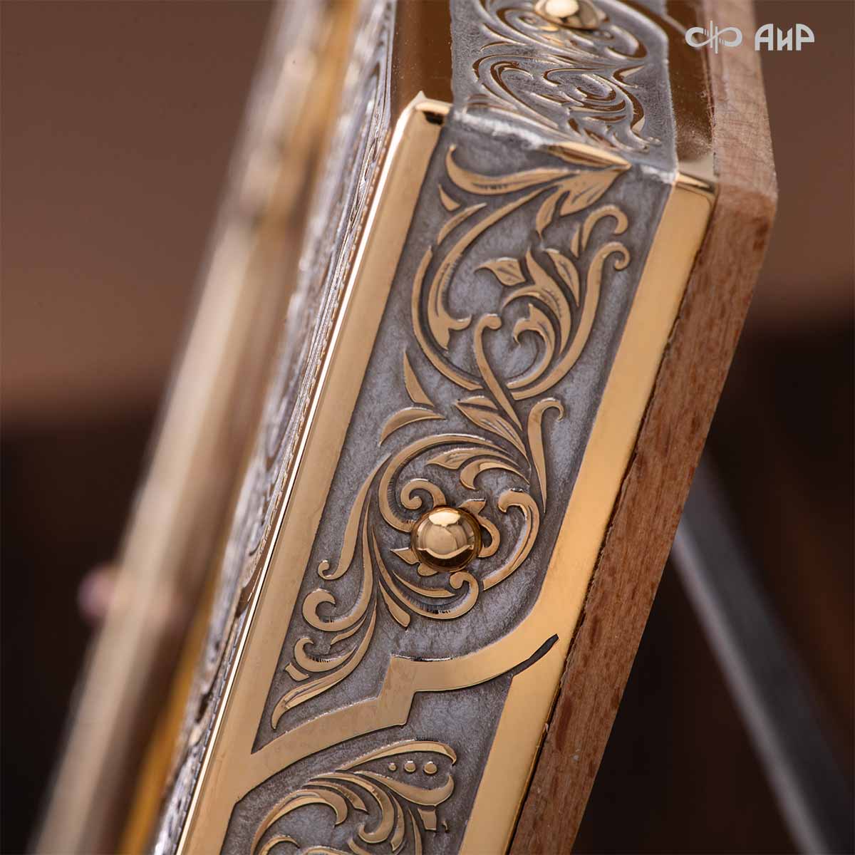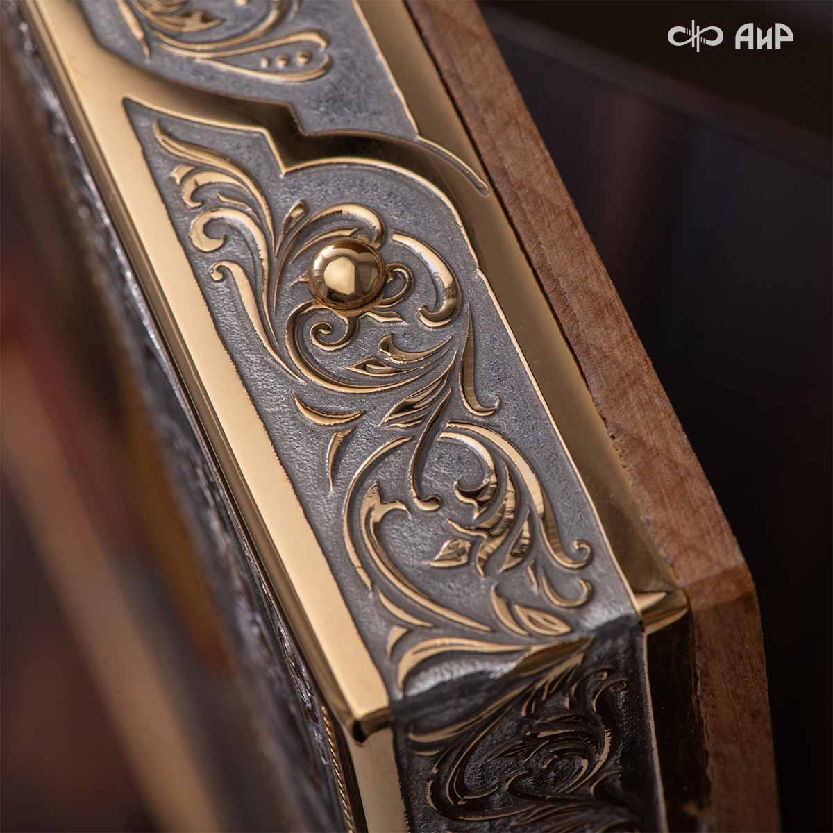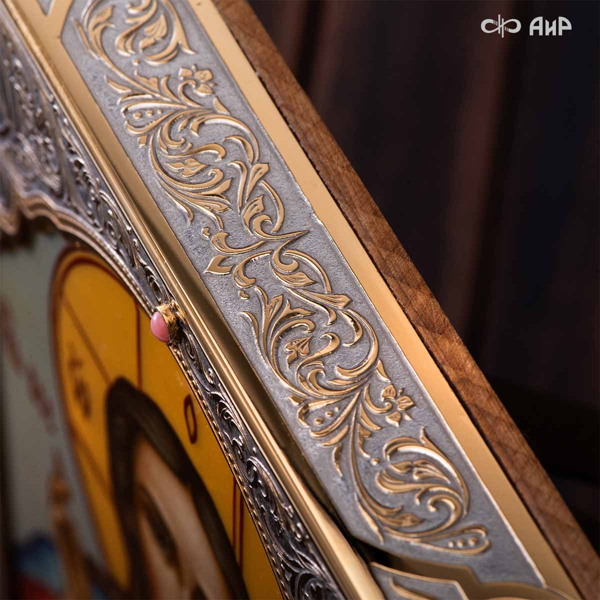 Икона в окладе “Господь Вседержитель” – это уникальное произведение искусства. Оклад иконы, созданный мастерами компании “АиР” в городе Златоуст, покрыт золотом высшей пробы (999,9°) толщиной в 1 микрон, что придает ей особую ценность и благородство. Каждый элемент оклада тщательно проработан, что делает икону настоящим шедевром художественного мастерства и символом духовной силы.