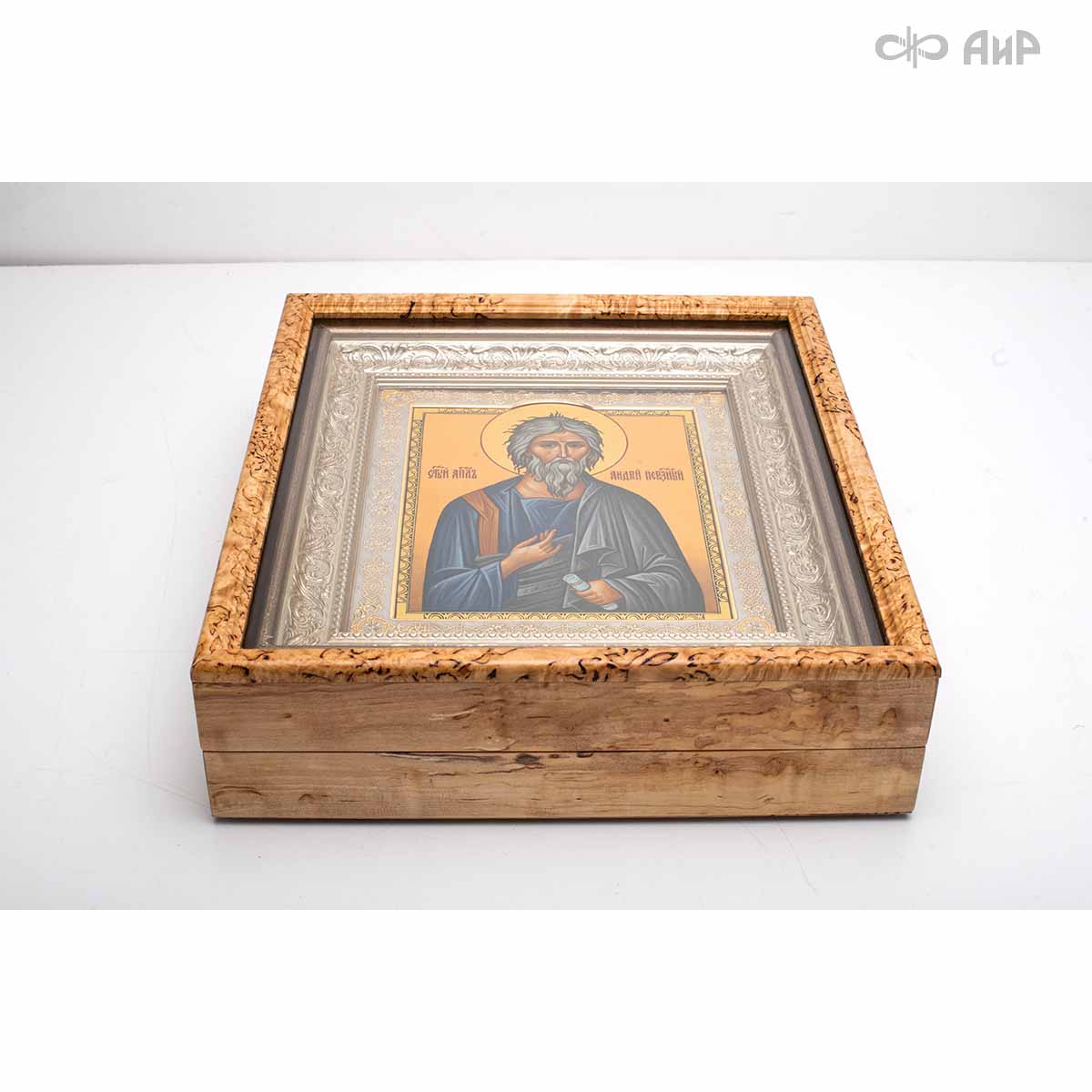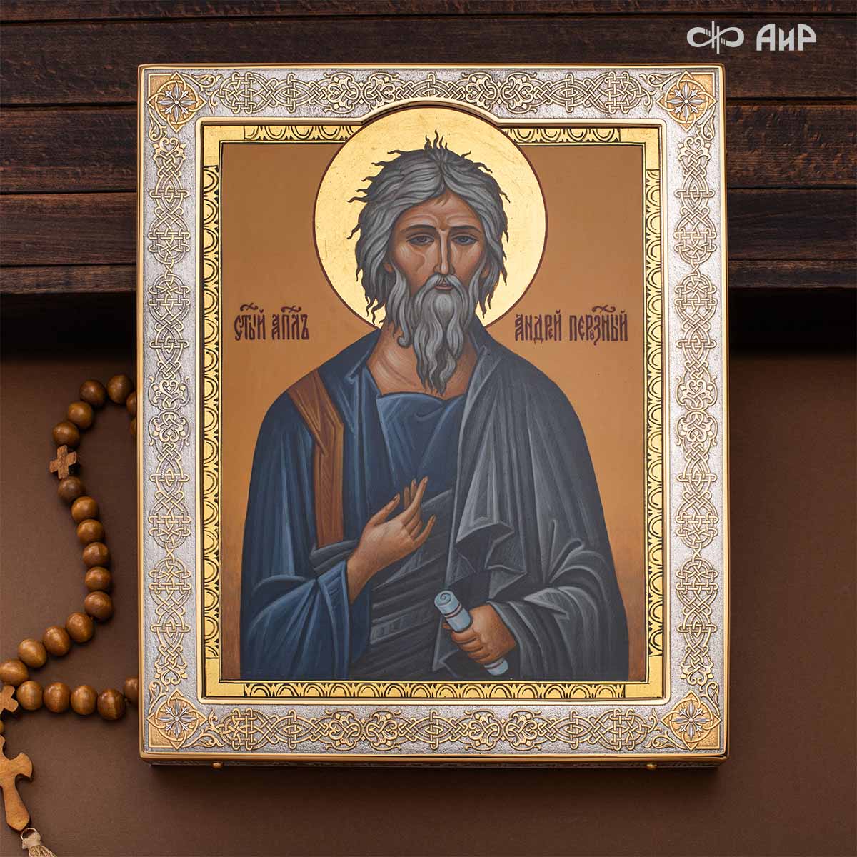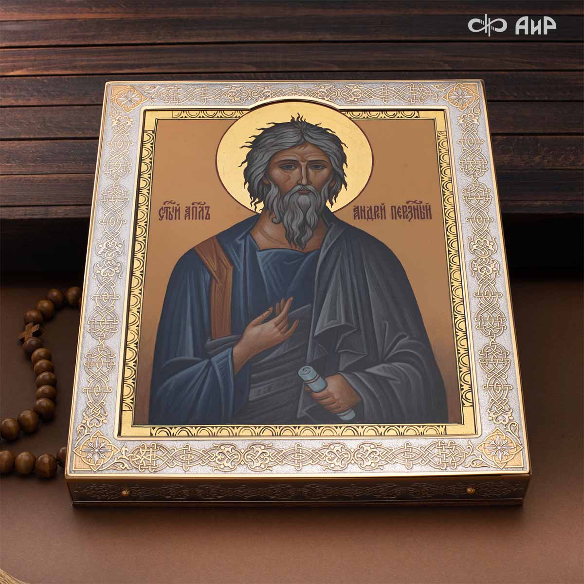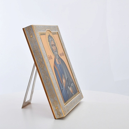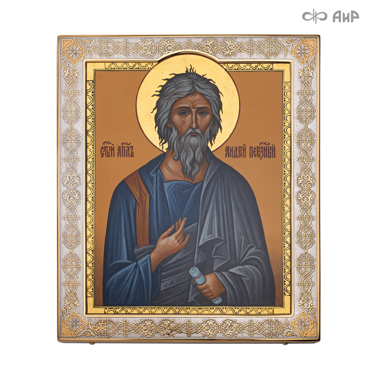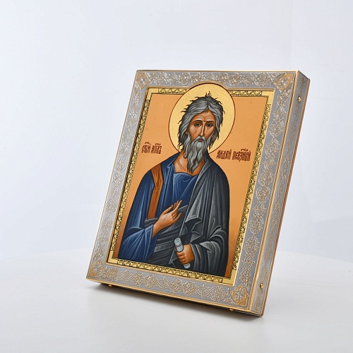 Оклад и киот иконы с любовью и мастерством выполнен в Компании «АиР» г. Златоуст. Покрытый золотом высшей пробы (999,9°) толщиной 1 микрон, оклад идеально дополняет образ Святого апостола, подчеркивая его Божественное значение и вечную ценность. Эта икона станет не только предметом поклонения, но и символом духовного просвещения и надежды для каждого, кто обратится к Святому апостолу Андрею Первозванному.