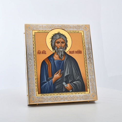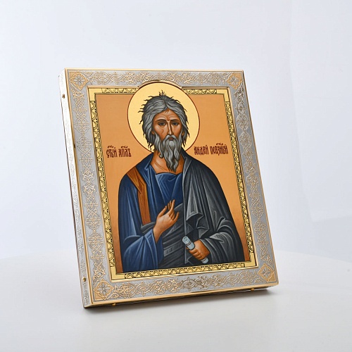 Икона Святого апостола Андрея Первозванного изображает одного из первых учеников Христа — брата апостола Петра. На иконе он часто представлен в образе монаха или воина, держа крест, на котором он был распят. Андрей Первозванный считается покровителем тех, кто ищет правду и истину, а также тех, кто находится в трудной жизненной ситуации.