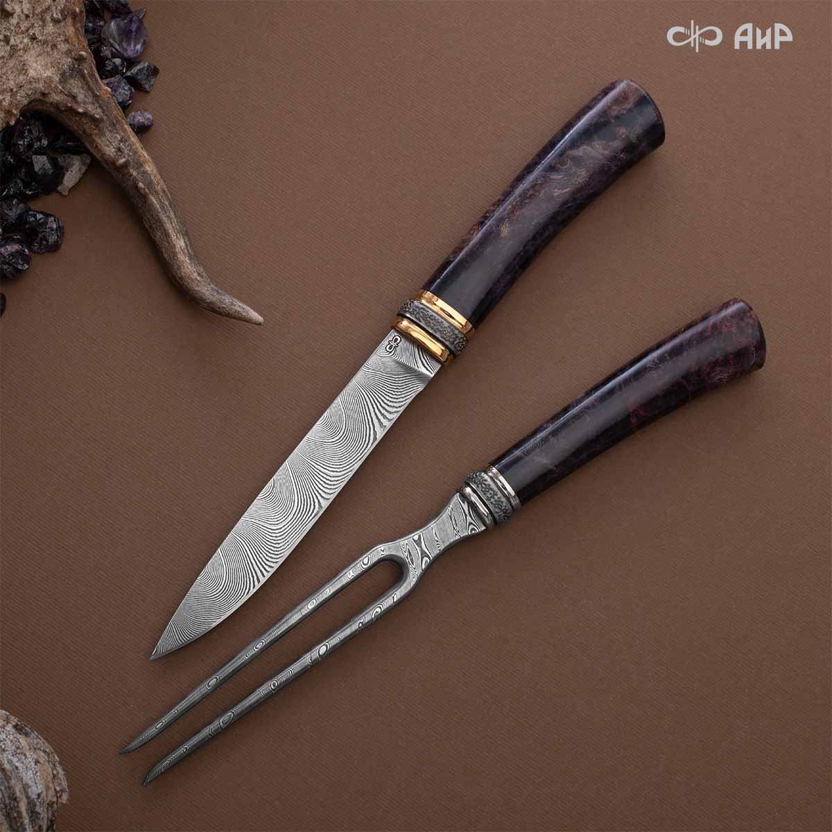 В комплекте кинжал "Хиршфангер", вилка, малый нож и нож Финский – достойное украшение коллекции маститого охотника или собирателя оружия. Срок изготовления от 2 месяцев, 100% предоплата.