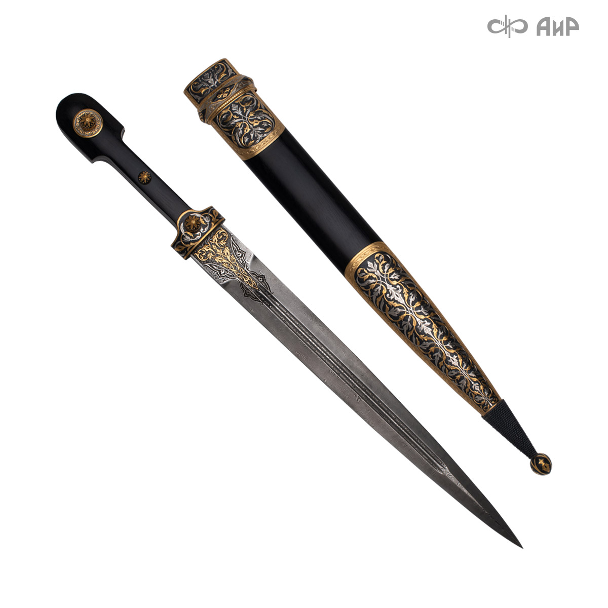 Уникальный дизайн настоящего кинжала, характерен для этого региона. Структура кинжала кавказского состоит из острого клинка с двумя режущими кромками и красиво украшенной рукояткой. Рукоятка кинжала часто выполнена из рога, драгоценных металлов, кости или дерева и украшена инкрустацией, гравировкой и орнаментом из золота или серебра. Эти узоры и украшения могут иметь символическое значение и передавать историю, верования или национальные особенности культуры.