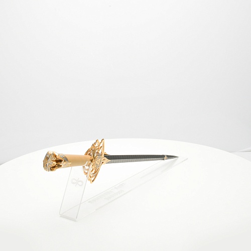 Стилеты прекрасны и не нуждаются в дополнительной защите или в форме, которая могла бы их ограничить. Каждая, выполненная мастерами деталь, плавно перетекает в другую, образуя почти невидимую взаимосвязь, что создает целостность восприятия. Лицевая сторона стилетов означает физическое проявление стихии, а центральный знак на обратной стороне являет собой «тонкое, преднебесное» состояние стихии, то есть ее духовное проявление. Прямой, зауженный клинок с утолщением в конце означает течение энергии с мощной концентрацией к высшим силам Вселенной.