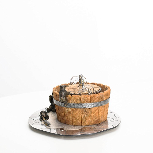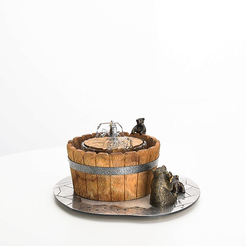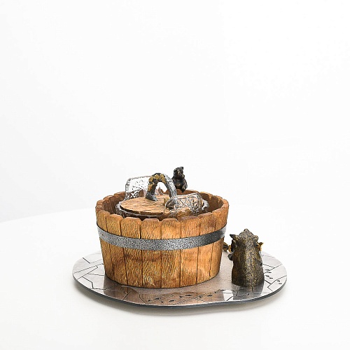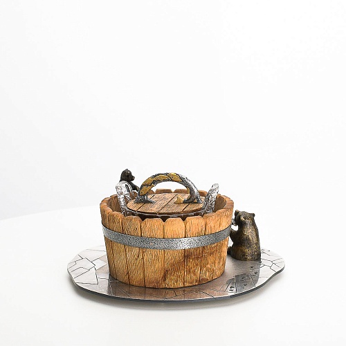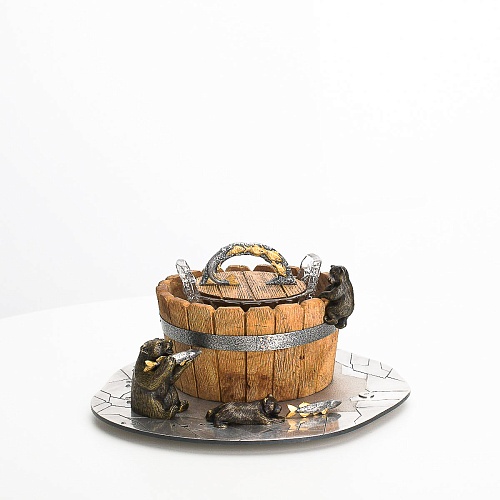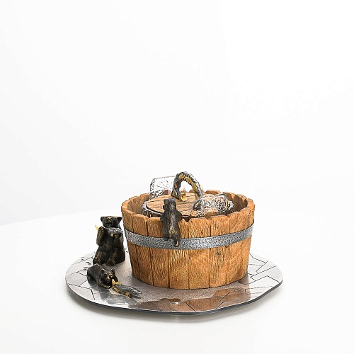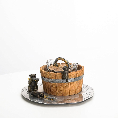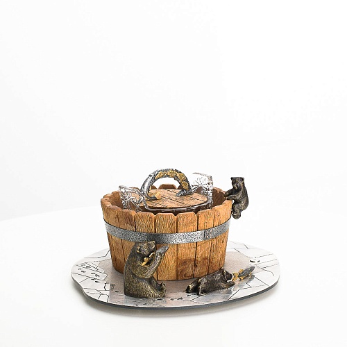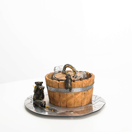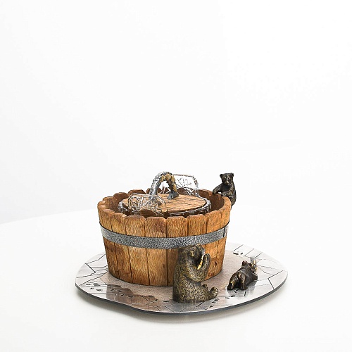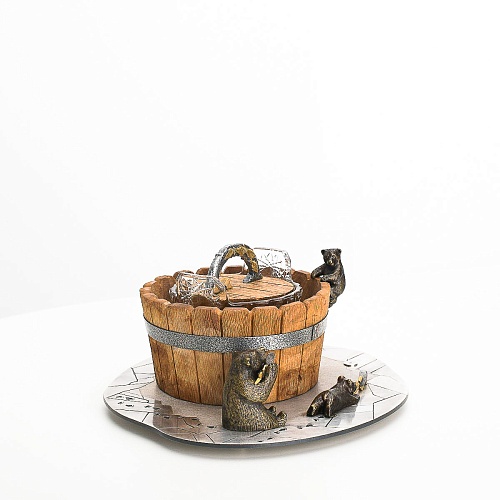 Икорница "Три медведя" создана по мотивам одноименной русской народной сказки и носит шутливый характер. В набор икорницы для красной или черной икры входят: хрустальная чаша для икры, деревянная чаша для льда в виде бочонка с крышечкой, подставка для икорницы из металла с фигурками медведей Михайло Ивановича, Настасьи Петровны и медвежонка Мишутки.