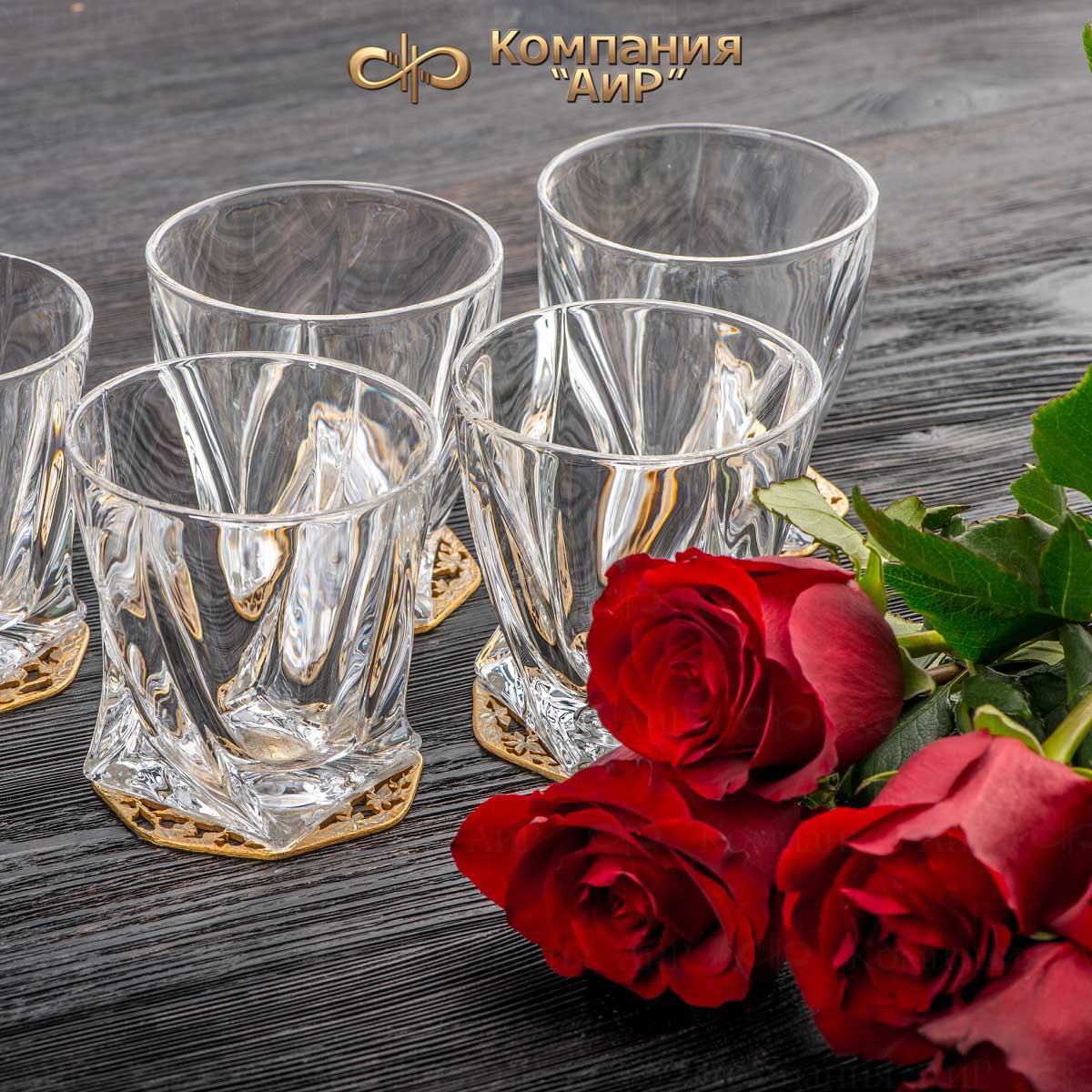 В набор для виски "Old Times" (в переводе с английского - "Давние времена") входят шесть бокалов и штоф объемом 750 мл из богемского стекла. Бокалы и штоф украшены в художественном стиле златоустовской гравюры на металле. У стеклянных бокалов и штофа на дне имеются украшенные металлические подставки. Кроме того, стеклянная пробка штофа также декорирована накладкой.