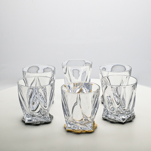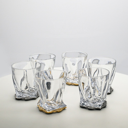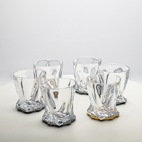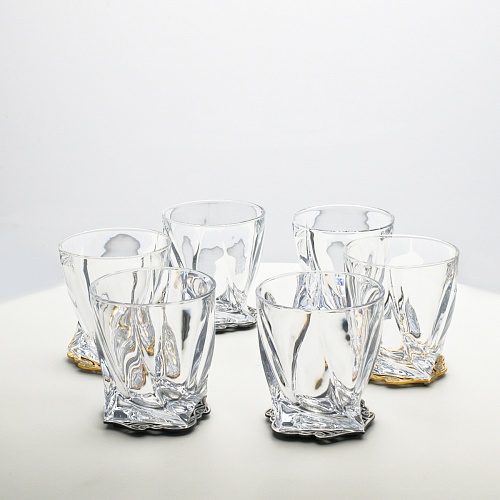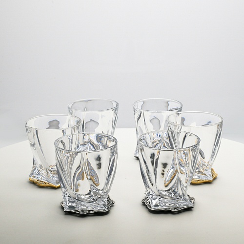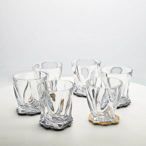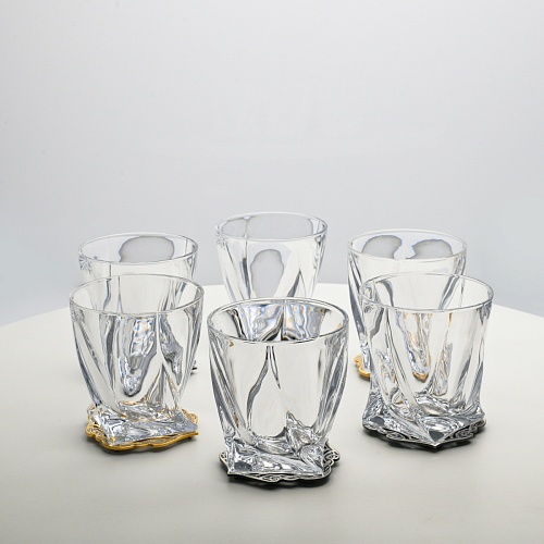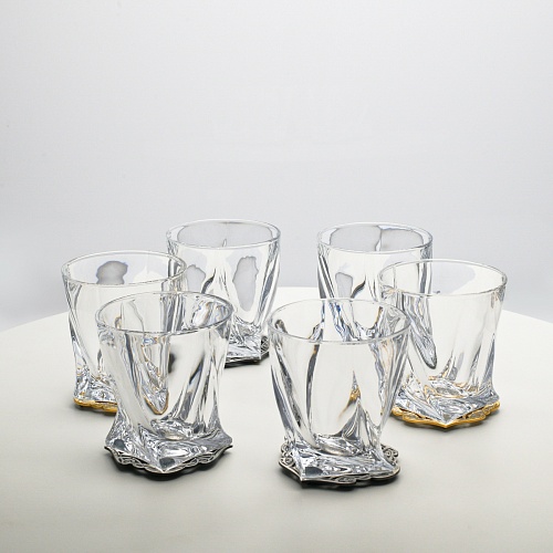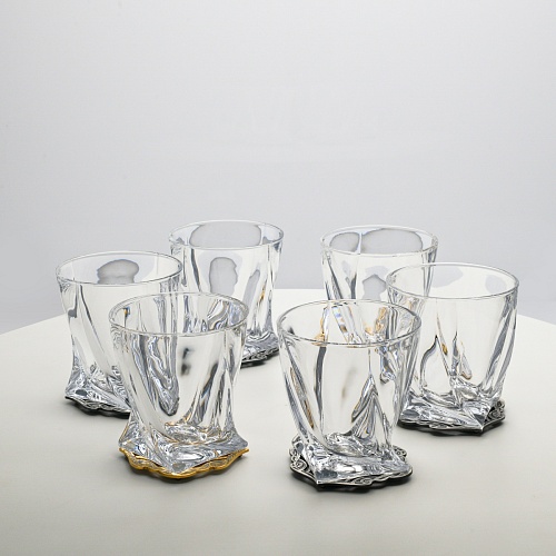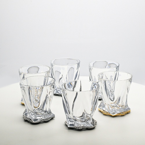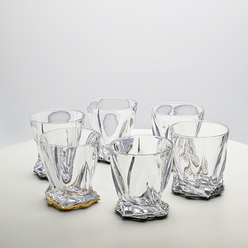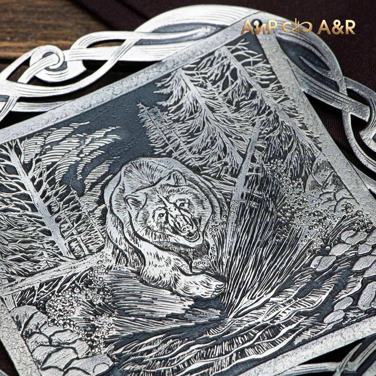 В набор для виски "Хозяин" входят два бокала из чешского стекла Bohemia и небольшое блюдо под закуску. Бокалы и блюдо украшены в художественном стиле златоустовской гравюры на металле. Миниатюры с изображением лесных зверей и птиц: медведь, филин, беркут. У стеклянных бокалов на дне имеются украшенные металлические подставки.