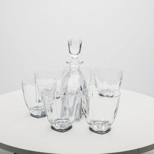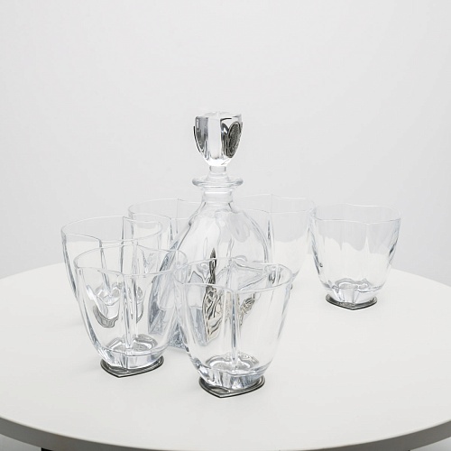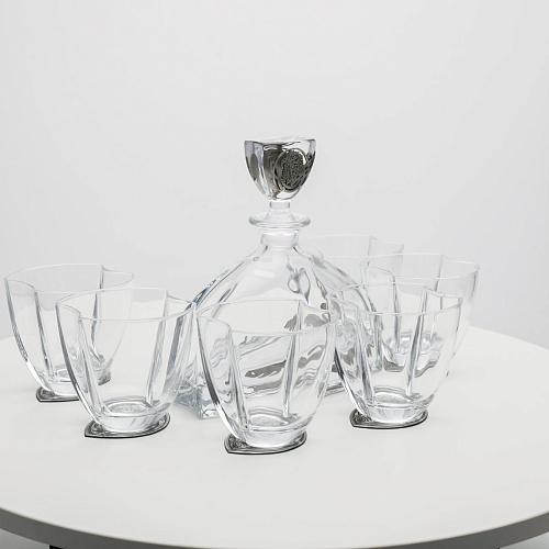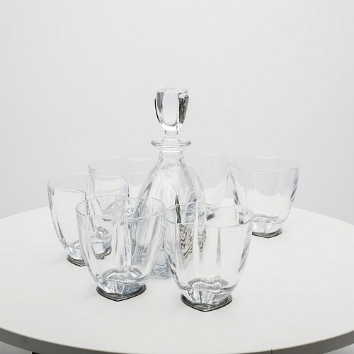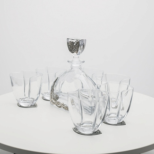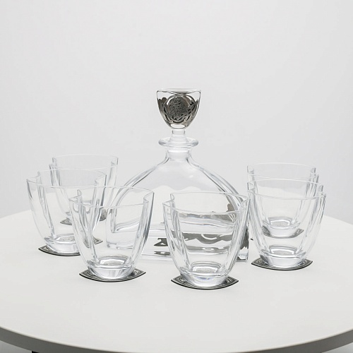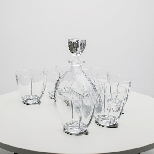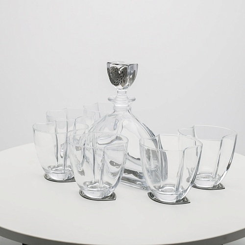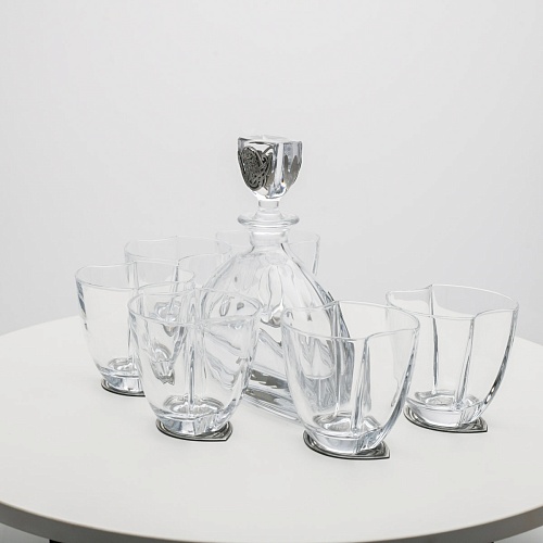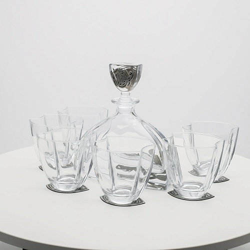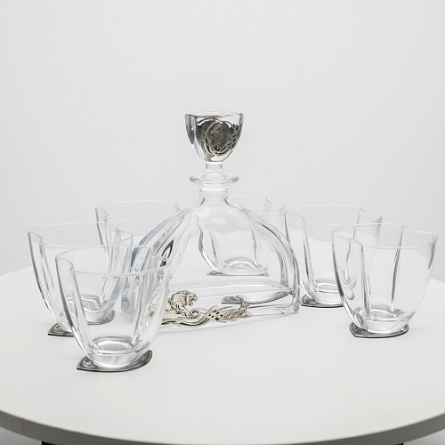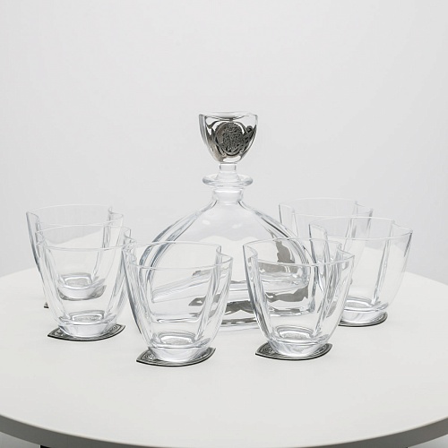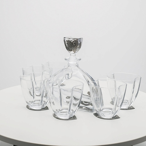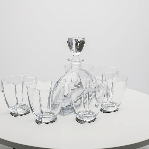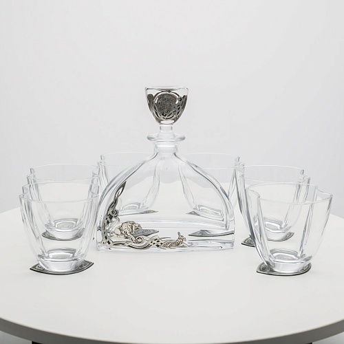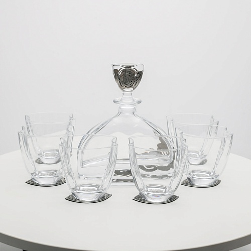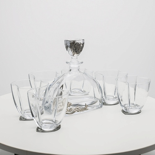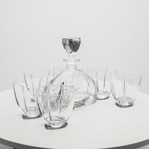 В набор для виски "Men’s Club" (в переводе с английского - "Мужской клуб") входят шесть бокалов и штоф объемом 750 мл из богемского стекла. Бокалы и штоф украшены в художественном стиле златоустовской гравюры на металле. У стеклянных бокалов и штофа на дне имеются украшенные металлические подставки. Кроме того, стеклянная пробка штофа также декорирована накладкой.