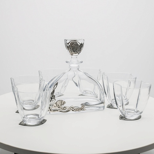 Подставки украшены сюжетами на природную тему. Сквозь прозрачное стекло бокалов и штофа можно спокойно любоваться игрой золотистого цвета виски, а потом, осушив бокал, увидеть лесного зверя или птицу, которые по воле художника открываются на дне бокала. Бокалы под виски принято заполнять не более чем на треть. При подаче виски должно быть охлажденным, но не слишком холодным. Виски принято пить маленькими глотками, подолгу держа во рту, чтобы распробовать его вкус. Виски по традиции считаются напитком второй половины дня, как нельзя лучше подходящим для вечерних встреч, бесед, размышлений.