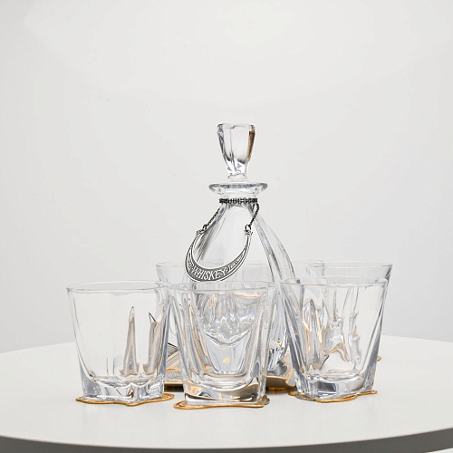 Подставки украшены сюжетами на ковбойскую тему. Сквозь прозрачное стекло бокалов и штофа можно спокойно любоваться игрой золотистого цвета виски, а потом, осушив бокал, увидеть ковбоя или сцену родео, которые по воле художника открываются на дне бокала. Бокалы под виски принято заполнять не более чем на треть. При подаче виски должно быть охлажденным, но не слишком холодным. Виски принято пить маленькими глотками, подолгу держа во рту, чтобы распробовать его вкус. Виски по традиции считаются напитком второй половины дня, как нельзя лучше подходящим для вечерних встреч, бесед, размышлений.