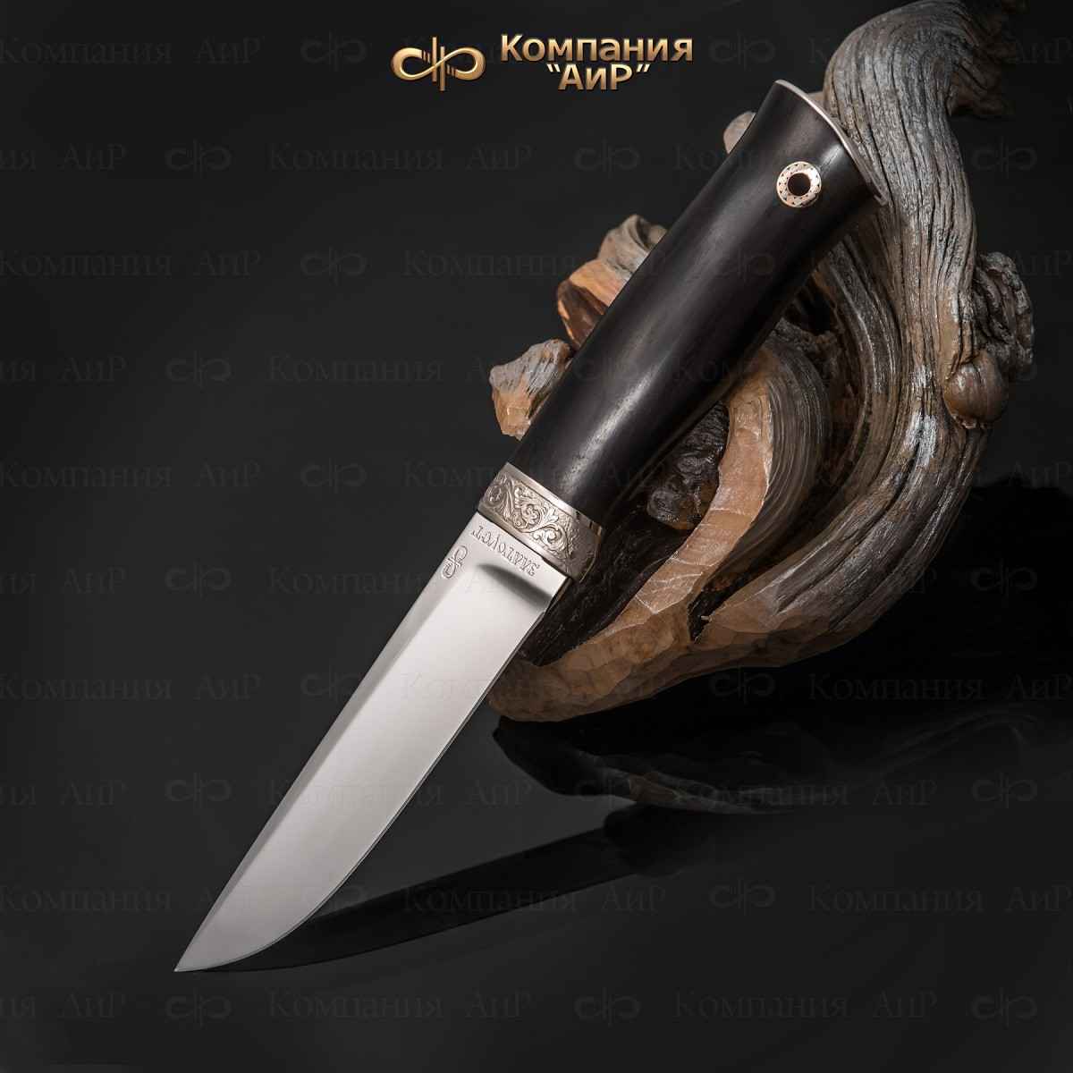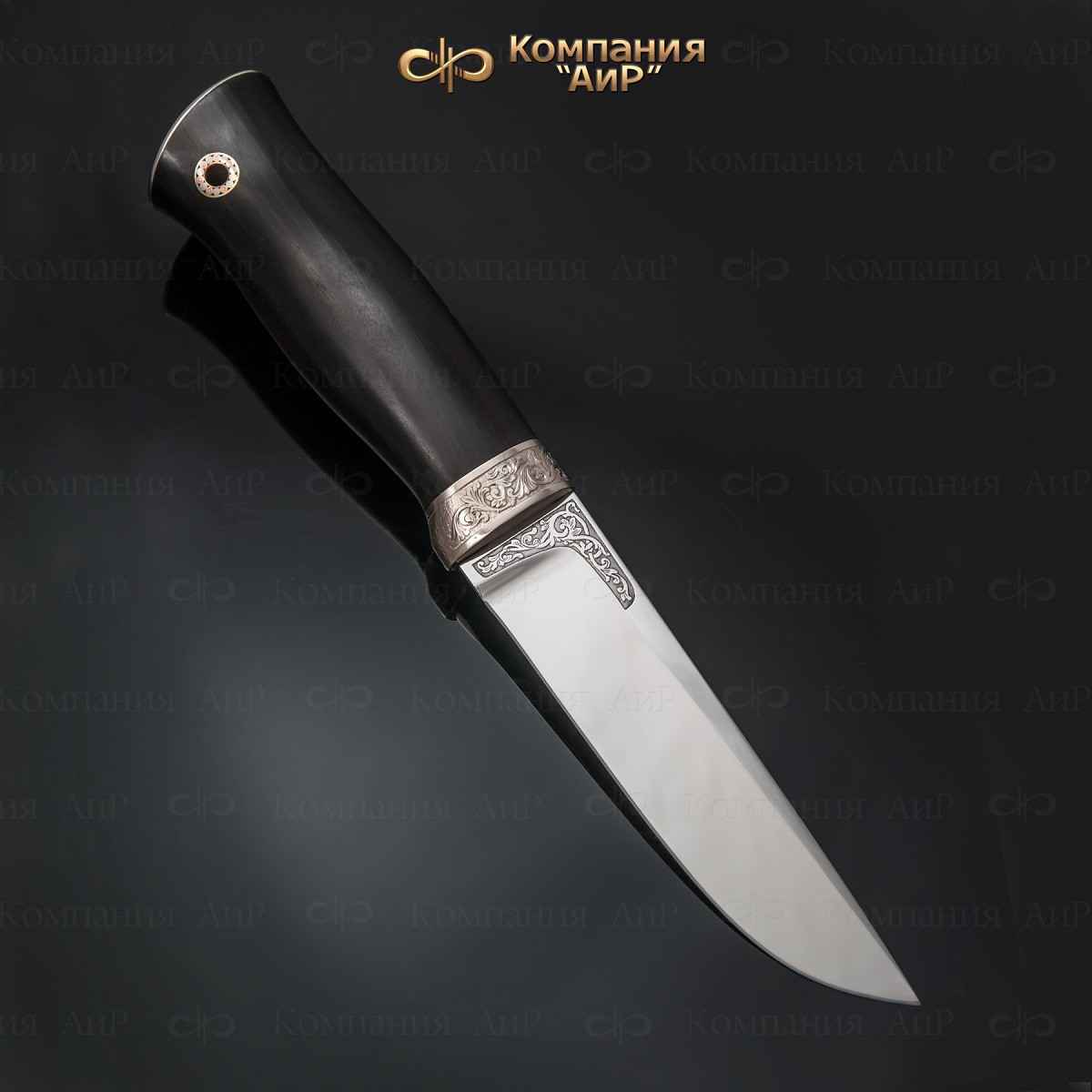 Подарочные ножи, изготовленные мастерами Компании «АиР», представляют собой удачный симбиоз красоты и функциональности. Их клинки изготавливаются из дамасской стали Zladinox и современных видов высоколегированной нержавеющей стали, что позволяет достигать таких качеств, как твердость, чистый блеск и эргономичность. Рукояти подарочных ножей «АиР» выполняются из ценных пород дерева (граб, кап березовый, кап ореховый, карельская береза). Тыльники и гарды ножей могут быть выполнены из латуни, мельхиора, серебра, цветного дамаска мокуме гане, титанового дамаска и покрыты золотом. На клинке подарочного ножа, как правило, методом травления, золочения, гравировки наносится рисунок на природные темы, изображающий животных и птиц, населяющих уральские леса и тайгу.
